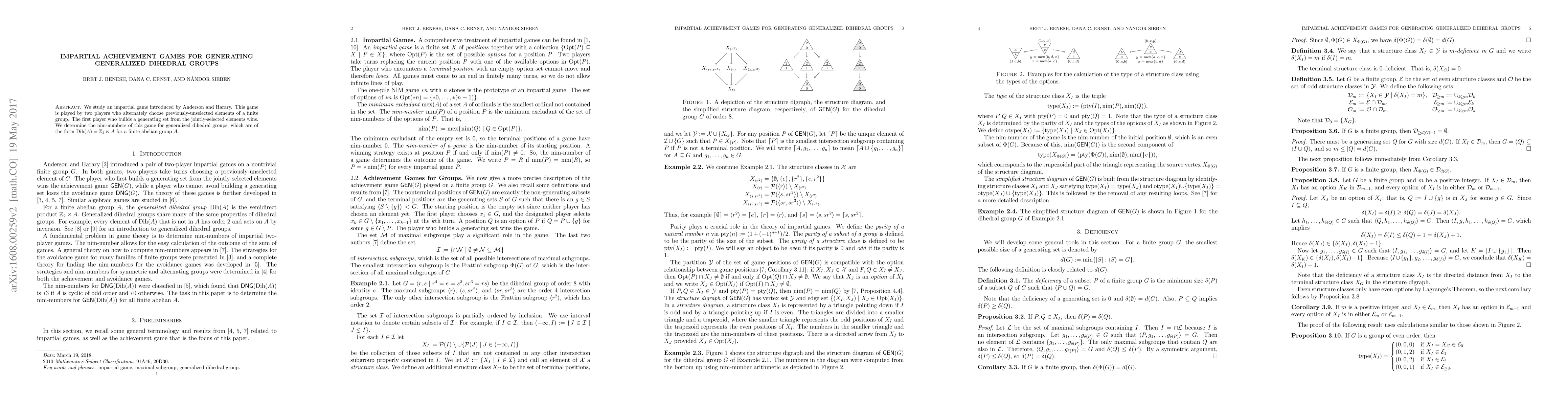 This paper explores an impartial game where players select elements from a finite group to form a winning generating set, determining the nim-numbers for generalized dihedral groups of the form $\operatorname{Dih}(A) = \mathbb{Z}_2 \ltimes A$. The study provides insights into the combinatorial and algebraic properties of these groups.