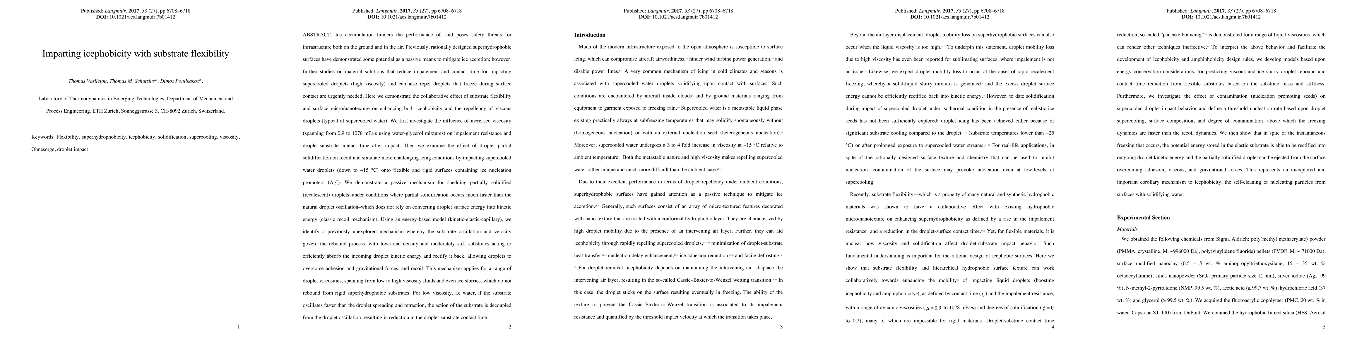 This research demonstrates that combining substrate flexibility with surface nanotexture enhances icephobicity and droplet repellency, enabling droplets to shed even when partially solidified. The study identifies a novel energy-absorbing mechanism in flexible substrates that allows droplets to overcome adhesion and gravity, rebounding even from ice slurries.