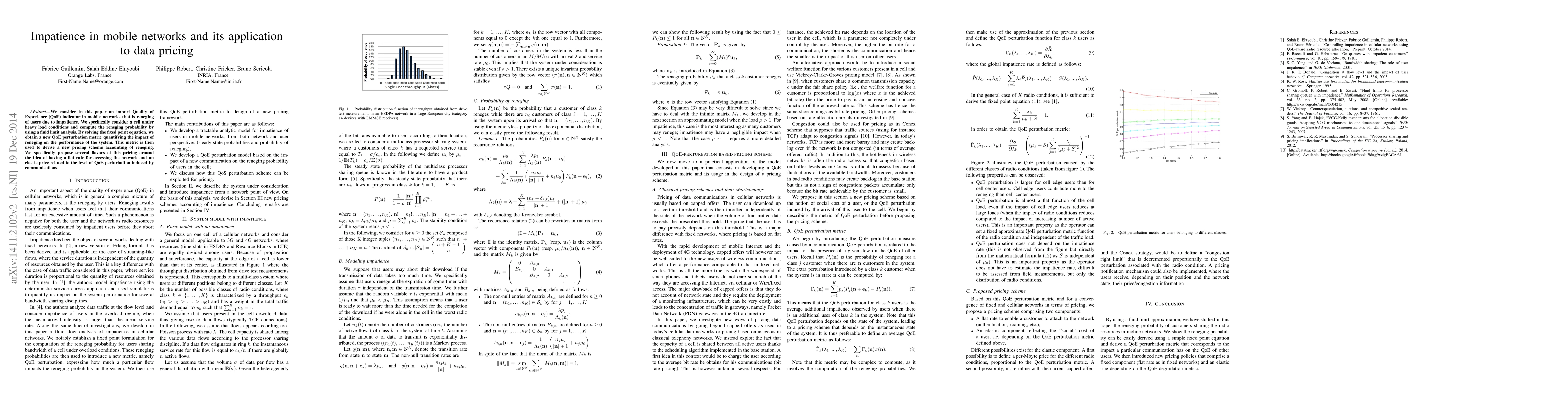 This paper introduces a new Quality of Experience (QoE) metric based on user impatience and reneging in mobile networks under heavy load. It proposes a pricing scheme that combines a flat rate with an elastic price reflecting the QoE perturbation caused by reneging, aiming to improve network performance.