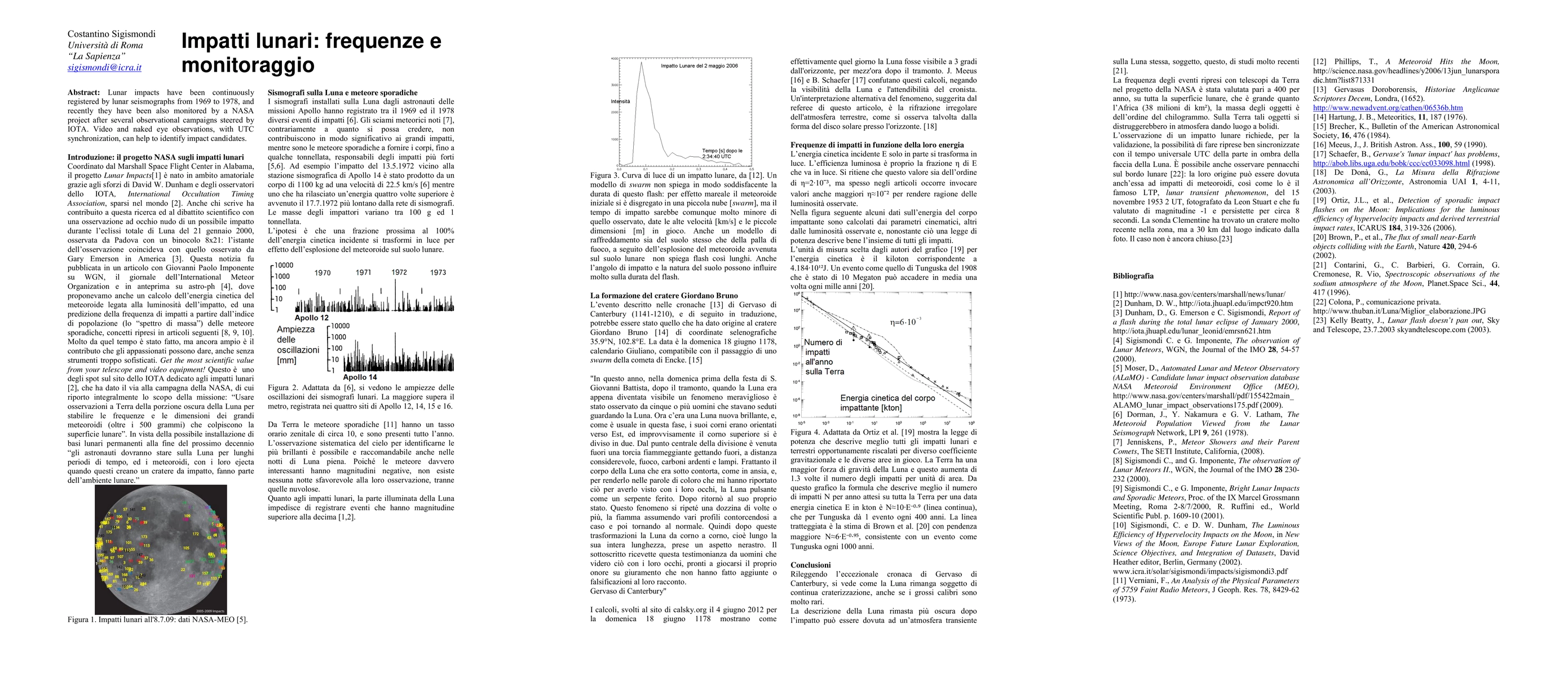 Lunar impacts have been continuously registered by lunar seismographs from 1969 to 1978, and recently they have been also monitored by a NASA project after several observational campaigns steered by IOTA. Video and naked eye observations, with UTC synchronization, can help to identify impact candidates.