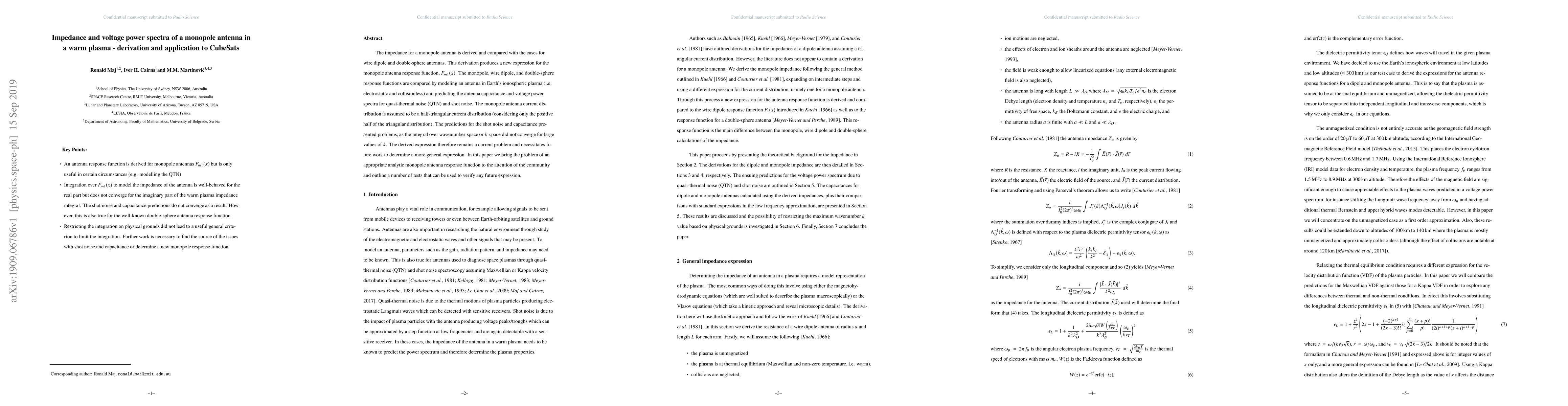Researchers derived a new expression for monopole antenna response function and compared it to wire dipole and double-sphere antennas, highlighting the need for further study due to convergence issues with shot noise and capacitance predictions.