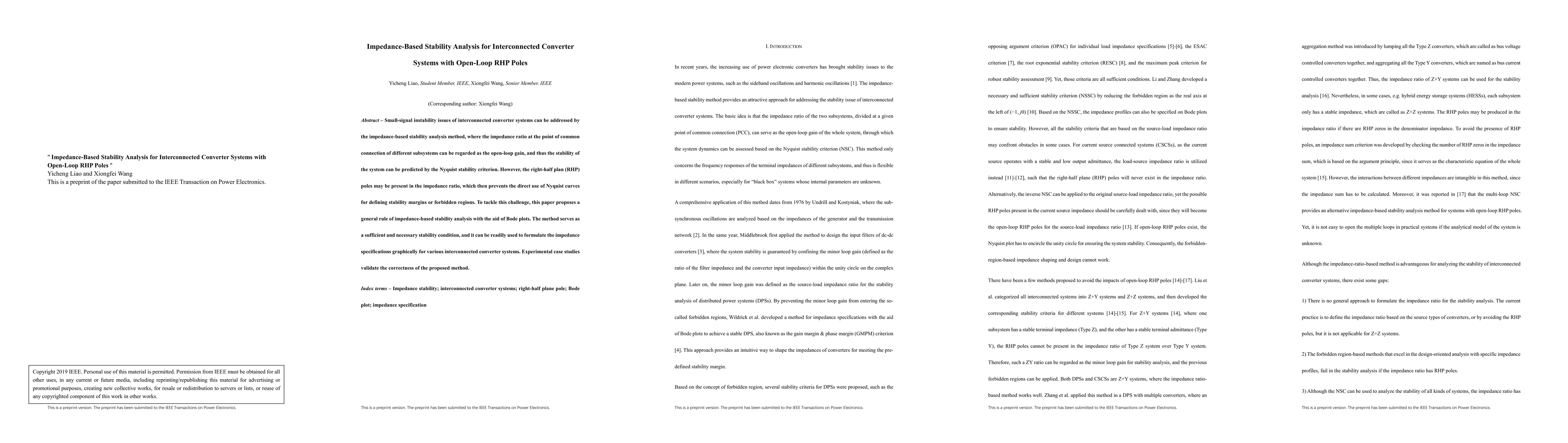 This paper proposes an impedance-based stability analysis method for interconnected converter systems with open-loop right-half plane poles, using Bode plots to address instability issues. The method provides a sufficient and necessary stability condition, validated through experimental case studies.