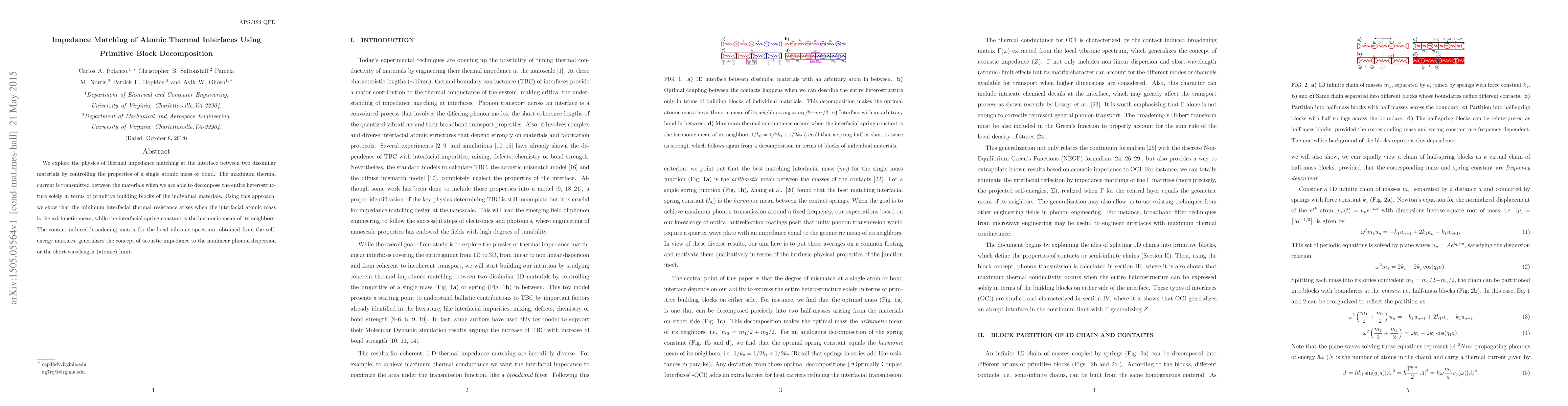We explore the physics of thermal impedance matching at the interface between two dissimilar materials by controlling the properties of a single atomic mass or bond. The maximum thermal current is transmitted between the materials when we are able to decompose the entire heterostructure solely in terms of primitive building blocks of the individual materials. Using this approach, we show that the minimum interfacial thermal resistance arises when the interfacial atomic mass is the arithmetic mean, while the interfacial spring constant is the harmonic mean of its neighbors. The contact induced broadening matrix for the local vibronic spectrum, obtained from the self-energy matrices, generalizes the concept of acoustic impedance to the nonlinear phonon dispersion or the short-wavelength (atomic) limit.