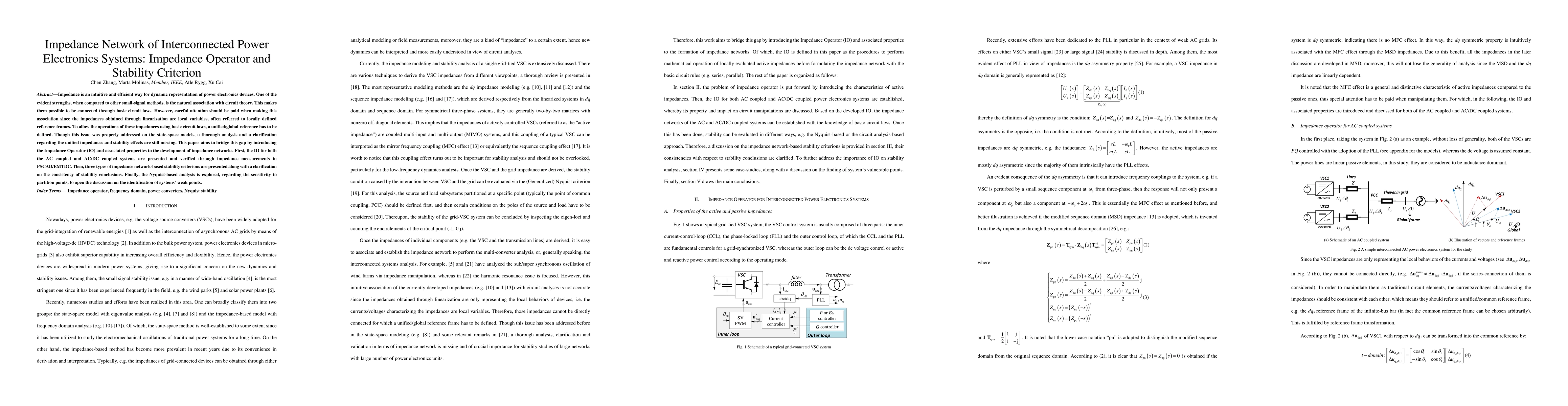 This paper introduces the Impedance Operator (IO) to analyze interconnected power electronics systems, presenting IO for AC and AC/DC coupled systems, and develops stability criteria for impedance networks, while discussing the Nyquist-based analysis for identifying system weaknesses.