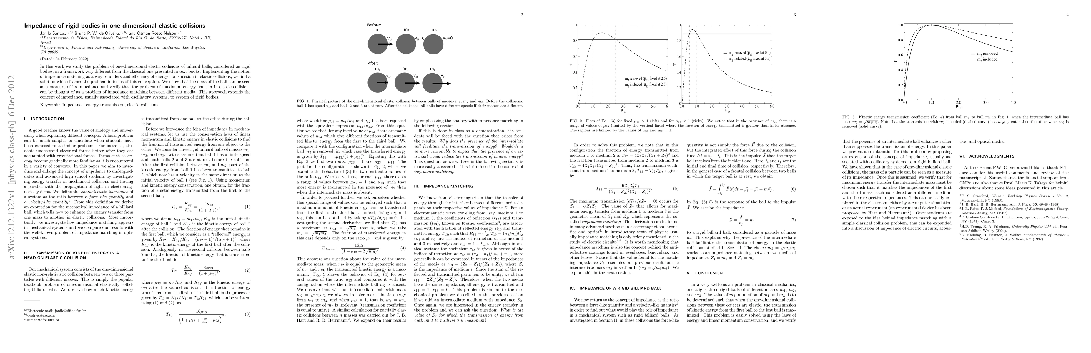 This paper explores one-dimensional elastic collisions of rigid bodies using impedance matching to understand energy transmission efficiency. It demonstrates that the mass of a ball acts as a measure of its impedance, extending the concept beyond oscillatory systems to rigid bodies.