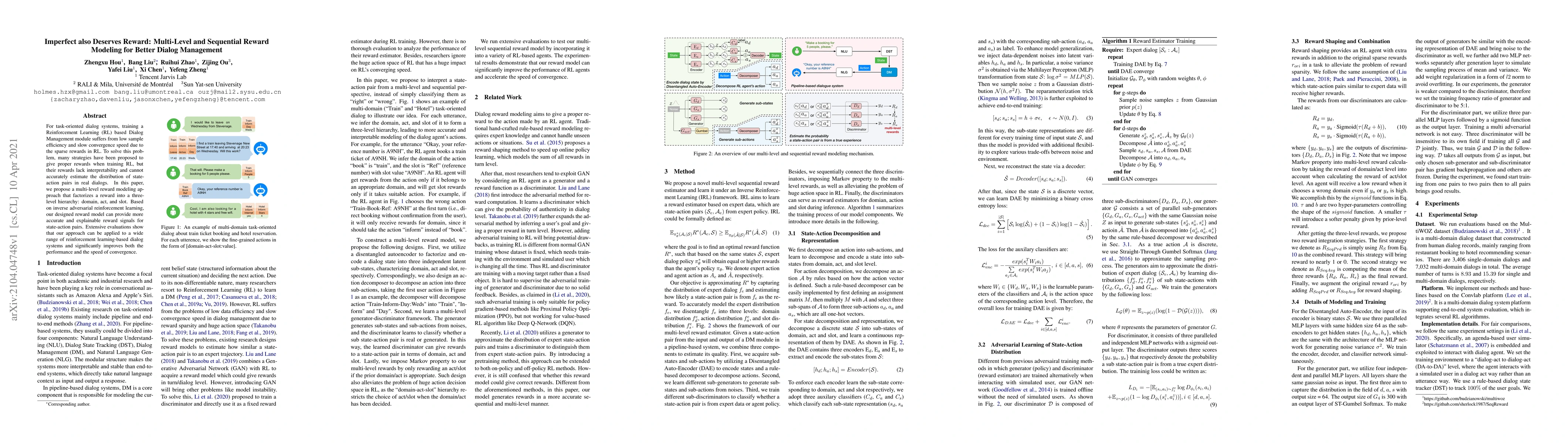 For task-oriented dialog systems, training a Reinforcement Learning (RL) based Dialog Management module suffers from low sample efficiency and slow convergence speed due to the sparse rewards in RL.To solve this problem, many strategies have been proposed to give proper rewards when training RL, but their rewards lack interpretability and cannot accurately estimate the distribution of state-action pairs in real dialogs. In this paper, we propose a multi-level reward modeling approach that factorizes a reward into a three-level hierarchy: domain, act, and slot. Based on inverse adversarial reinforcement learning, our designed reward model can provide more accurate and explainable reward signals for state-action pairs.Extensive evaluations show that our approach can be applied to a wide range of reinforcement learning-based dialog systems and significantly improves both the performance and the speed of convergence.