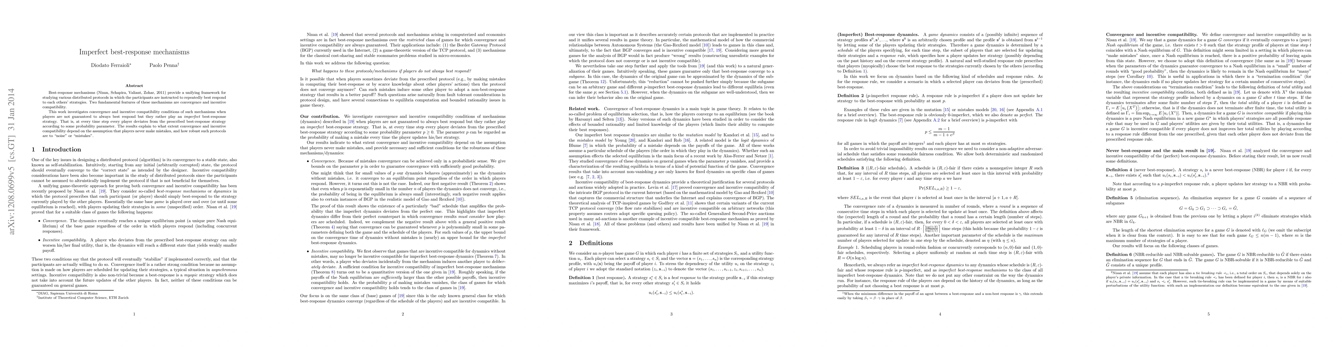 Best-response mechanisms (Nisan, Schapira, Valiant, Zohar, 2011) provide a unifying framework for studying various distributed protocols in which the participants are instructed to repeatedly best respond to each others' strategies. Two fundamental features of these mechanisms are convergence and incentive compatibility. This work investigates convergence and incentive compatibility conditions of such mechanisms when players are not guaranteed to always best respond but they rather play an imperfect best-response strategy. That is, at every time step every player deviates from the prescribed best-response strategy according to some probability parameter. The results explain to what extent convergence and incentive compatibility depend on the assumption that players never make mistakes, and how robust such protocols are to "noise" or "mistakes".