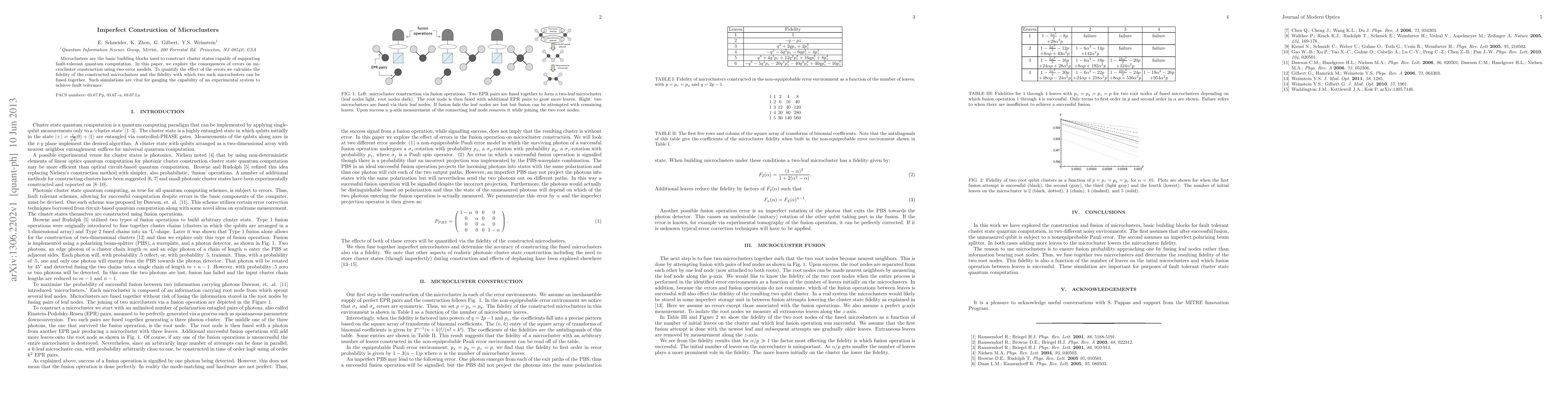This paper investigates the impact of errors on the construction of microclusters, fundamental components for fault-tolerant quantum computation, using two error models. It quantifies the fidelity of microclusters and their fusion, crucial for assessing experimental systems' ability to achieve fault tolerance.