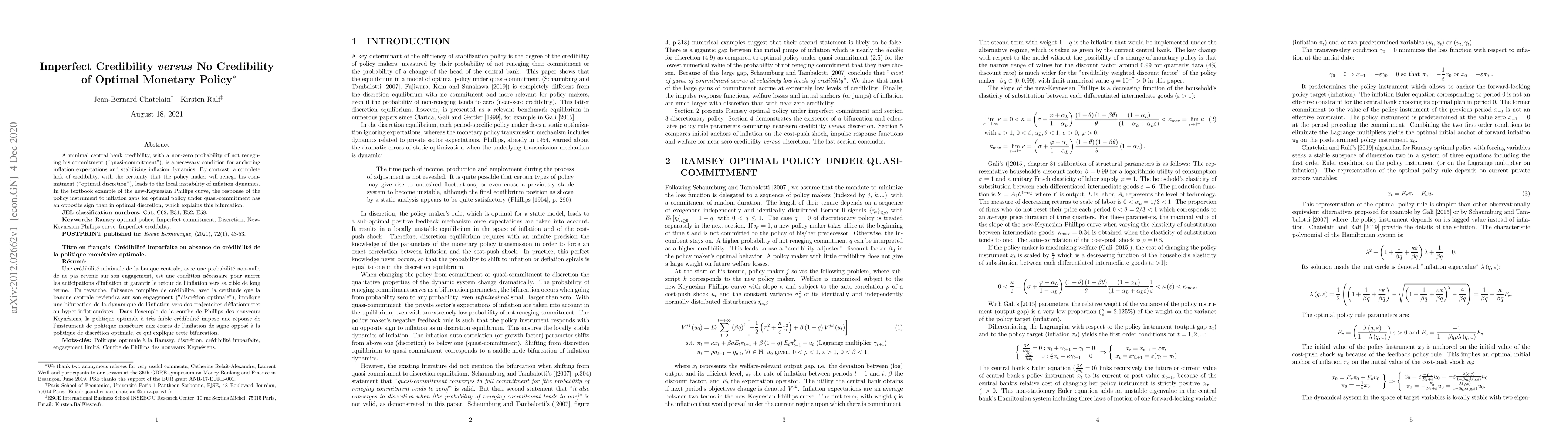 A minimal central bank credibility, with a non-zero probability of not renegning his commitment ("quasi-commitment"), is a necessary condition for anchoring inflation expectations and stabilizing inflation dynamics. By contrast, a complete lack of credibility, with the certainty that the policy maker will renege his commitment ("optimal discretion"), leads to the local instability of inflation dynamics. In the textbook example of the new-Keynesian Phillips curve, the response of the policy instrument to inflation gaps for optimal policy under quasi-commitment has an opposite sign than in optimal discretion, which explains this bifurcation.