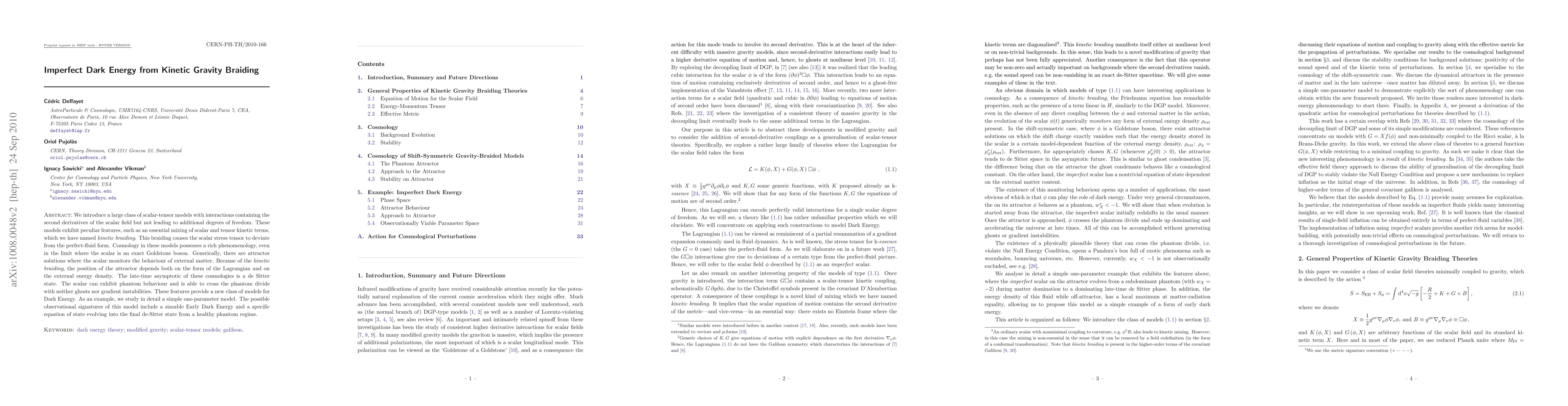 We introduce a large class of scalar-tensor models with interactions containing the second derivatives of the scalar field but not leading to additional degrees of freedom. These models exhibit peculiar features, such as an essential mixing of scalar and tensor kinetic terms, which we have named kinetic braiding. This braiding causes the scalar stress tensor to deviate from the perfect-fluid form. Cosmology in these models possesses a rich phenomenology, even in the limit where the scalar is an exact Goldstone boson. Generically, there are attractor solutions where the scalar monitors the behaviour of external matter. Because of the kinetic braiding, the position of the attractor depends both on the form of the Lagrangian and on the external energy density. The late-time asymptotic of these cosmologies is a de Sitter state. The scalar can exhibit phantom behaviour and is able to cross the phantom divide with neither ghosts nor gradient instabilities. These features provide a new class of models for Dark Energy. As an example, we study in detail a simple one-parameter model. The possible observational signatures of this model include a sizeable Early Dark Energy and a specific equation of state evolving into the final de-Sitter state from a healthy phantom regime.
