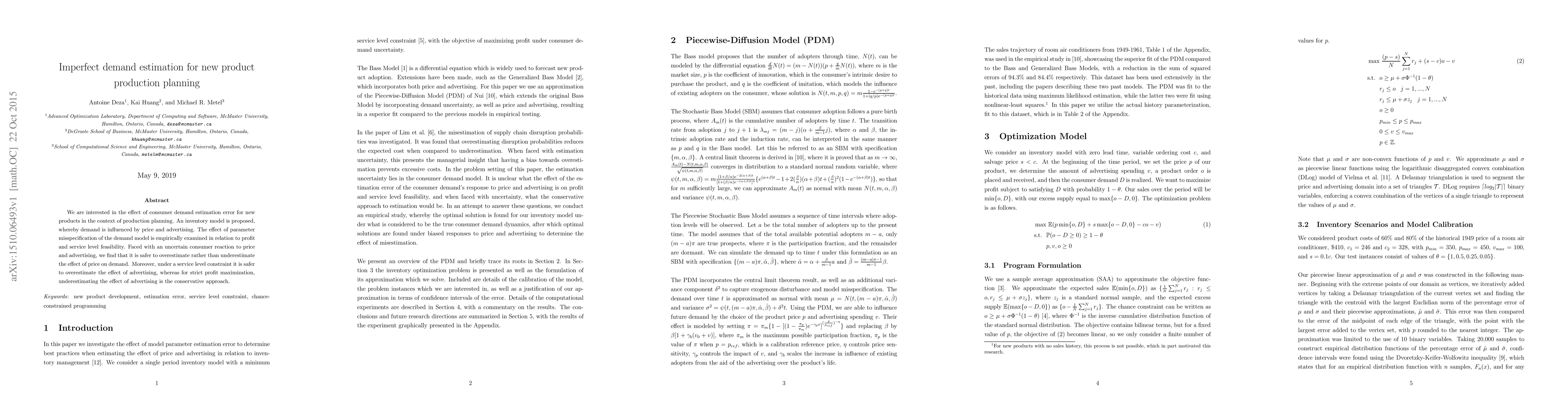 This paper examines the effect of overestimating the influence of price and advertising on consumer demand in production planning.