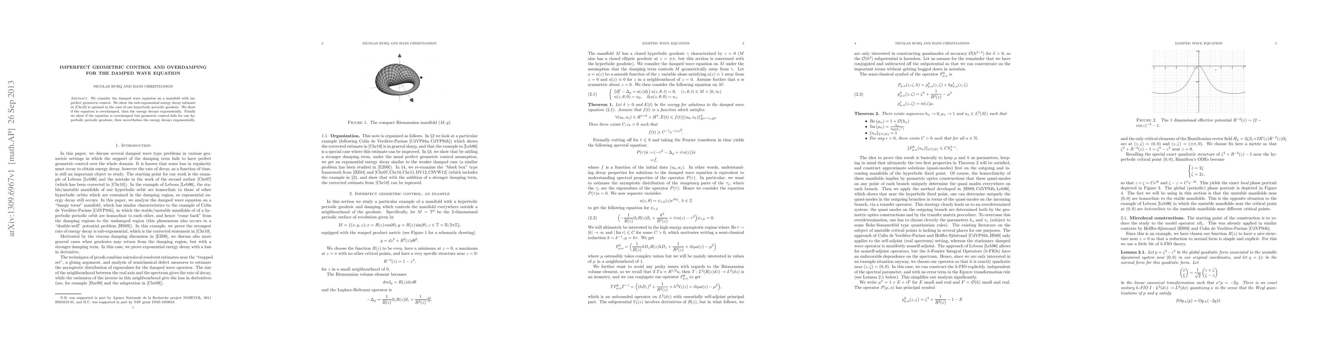 We consider the damped wave equation on a manifold with imperfect geometric control. We show the sub-exponential energy decay estimate in \cite{Chr-NC-erratum} is optimal in the case of one hyperbolic periodic geodesic. We show if the equation is overdamped, then the energy decays exponentially. Finally we show if the equation is overdamped but geometric control fails for one hyperbolic periodic geodesic, then nevertheless the energy decays exponentially.