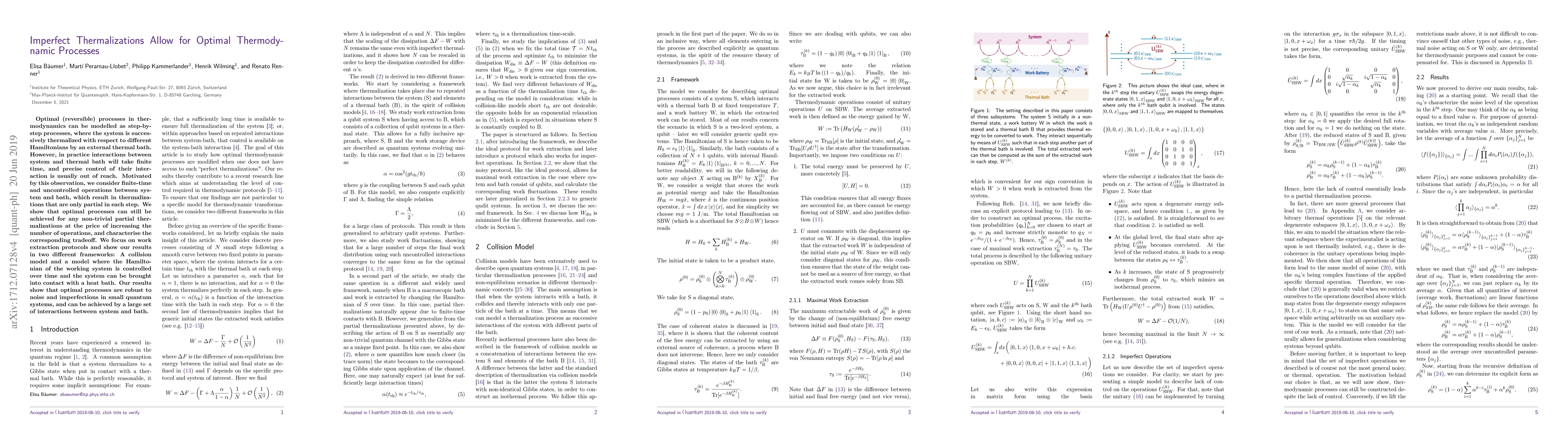 This paper explores how optimal thermodynamic processes can be achieved despite imperfect thermalizations due to finite-time interactions between a system and a thermal bath. It demonstrates that even partial thermalizations can lead to optimal processes, albeit requiring more operations, and characterizes the associated trade-off.