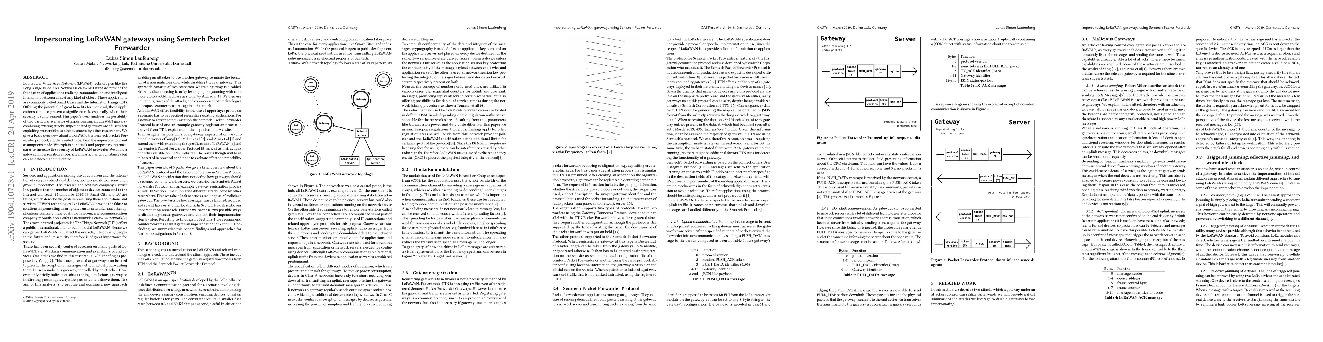 This paper investigates the feasibility of impersonating LoRaWAN gateways using the Semtech Packet Forwarder protocol, detailing potential attack scenarios and proposing countermeasures to enhance LoRaWAN security. While gateway impersonation can occur under specific conditions, the paper demonstrates that detection and prevention strategies can mitigate these risks.