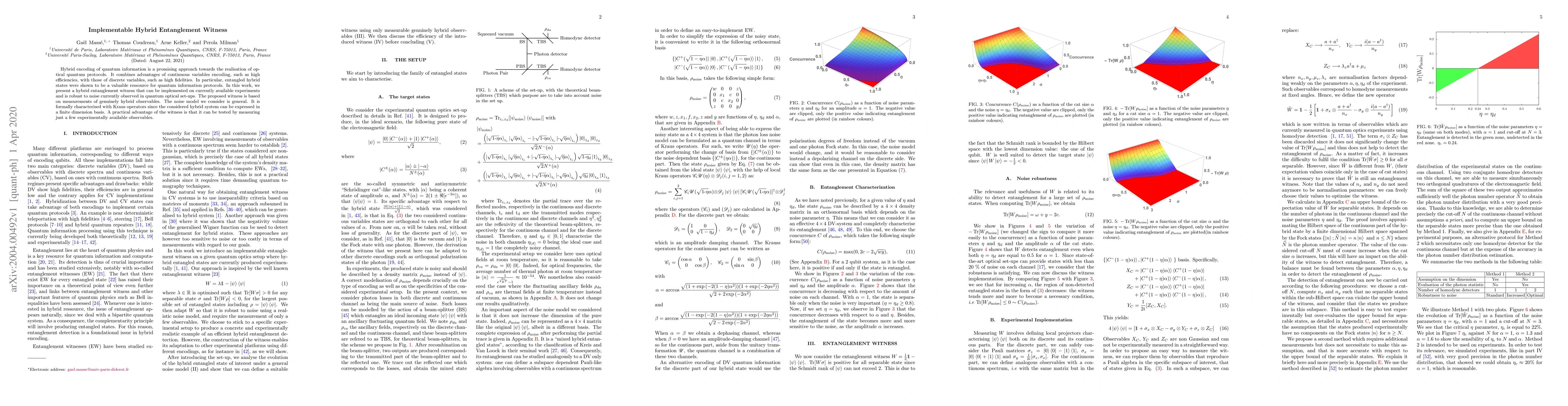 Hybrid encoding of quantum information is a promising approach towards the realisation of optical quantum protocols. It combines advantages of continuous variables encoding, such as high efficiencies, with those of discrete variables, such as high fidelities. In particular, entangled hybrid states were shown to be a valuable ressource for quantum information protocols. In this work, we present a hybrid entanglement witness that can be implemented on currently available experiments and is robust to noise currently observed in quantum optical set-ups. The proposed witness is based on measurements of genuinely hybrid observables. The noise model we consider is general. It is formally characterised with Kraus operators since the considered hybrid system can be expressed in a finite dimension basis. A practical advantage of the witness is that it can be tested by measuring just a few experimentally available observables.