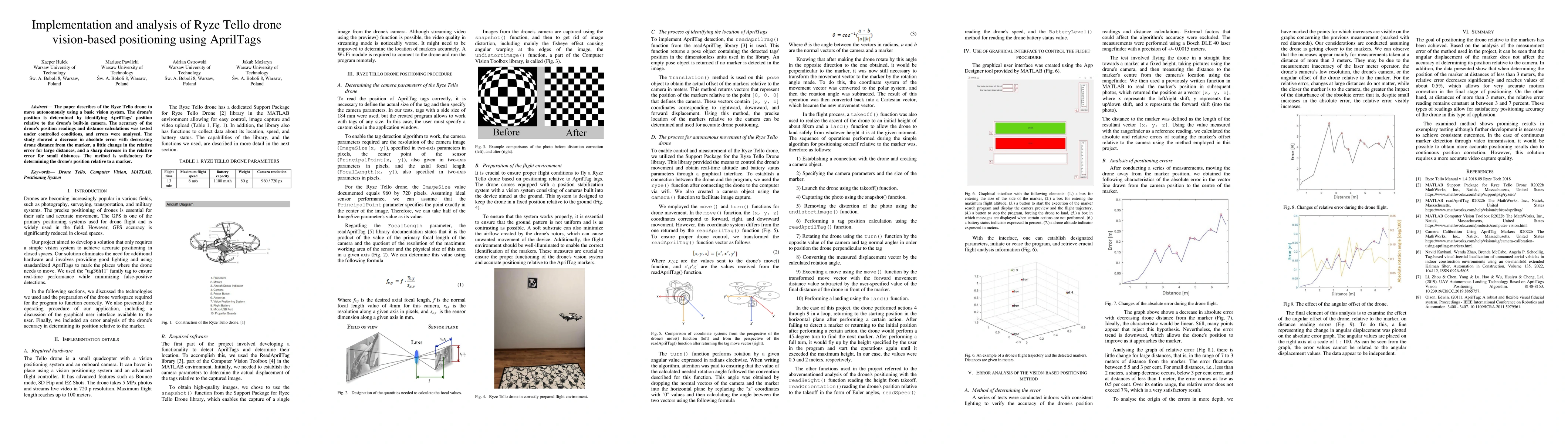 The paper describes of the Ryze Tello drone to move autonomously using a basic vision system. The drone's position is determined by identifying AprilTags' position relative to the drone's built-in camera. The accuracy of the drone's position readings and distance calculations was tested under controlled conditions, and errors were analysed. The study showed a decrease in absolute error with decreasing drone distance from the marker, a little change in the relative error for large distances, and a sharp decrease in the relative error for small distances. The method is satisfactory for determining the drone's position relative to a marker.