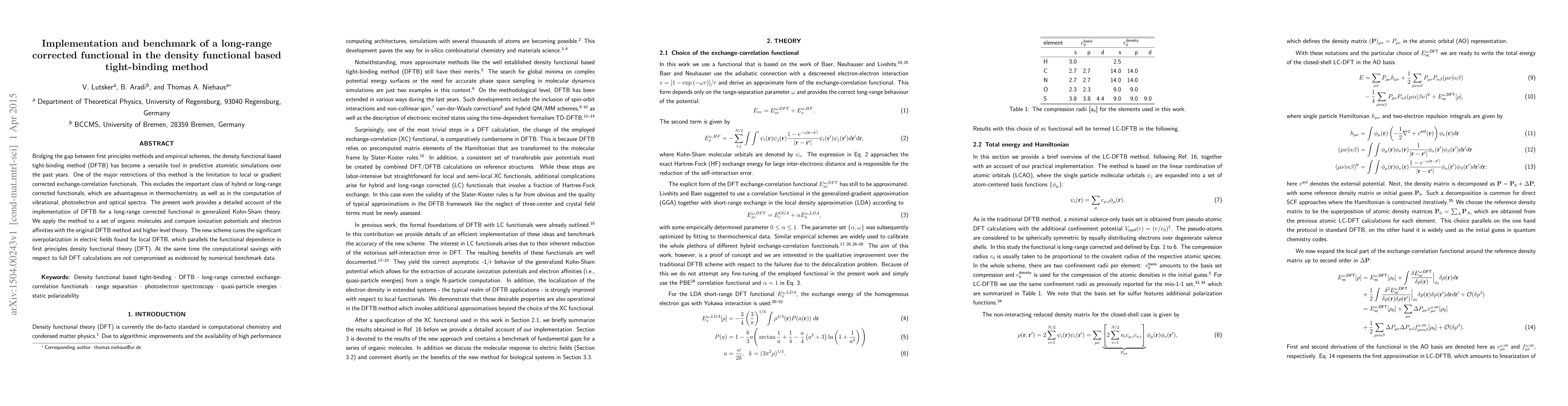 This paper details the implementation of a long-range corrected functional in the density functional based tight-binding (DFTB) method, demonstrating its effectiveness in organic molecule simulations and comparing results with original DFTB and higher-level theory, while maintaining computational efficiency.