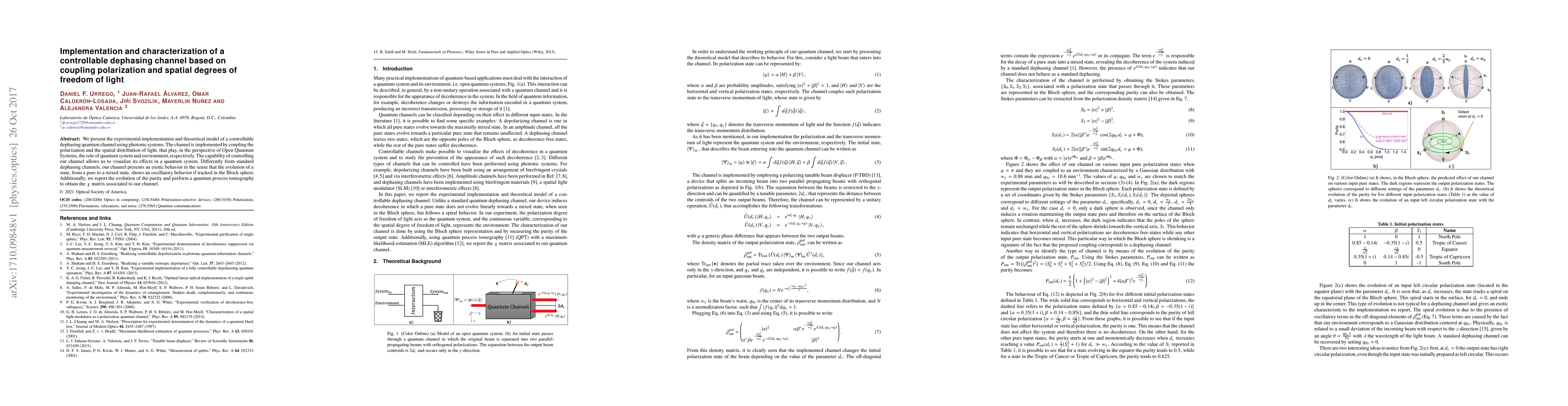 This paper details the implementation of a controllable dephasing quantum channel using photonic systems, where polarization and spatial distribution of light act as system and environment. The channel exhibits unique oscillatory behavior in state evolution, visualized via Bloch sphere, and is characterized through purity evolution and quantum process tomography.