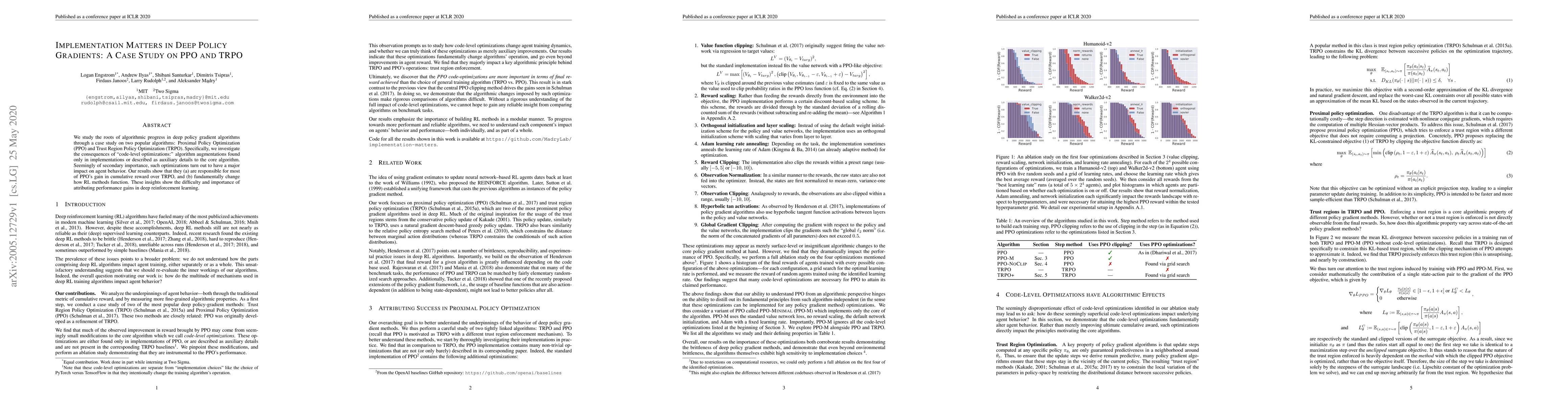 This paper investigates how "code-level optimizations" in the implementations of Proximal Policy Optimization (PPO) and Trust Region Policy Optimization (TRPO) significantly impact their performance, revealing that these details are responsible for most of PPO's reward gains over TRPO and fundamentally alter reinforcement learning methods' functioning.