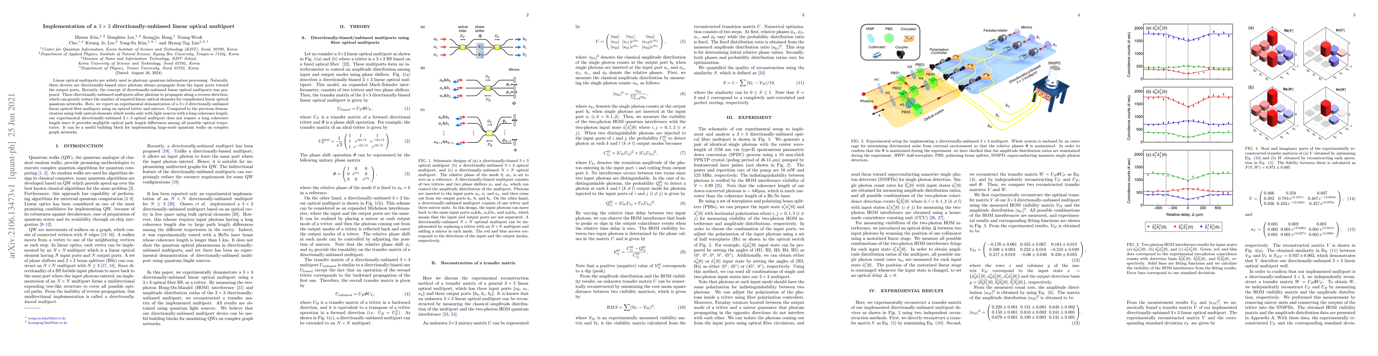 This paper presents an experimental implementation of a 3 x 3 directionally-unbiased linear optical fiber multiport using an optical tritter and mirrors, which allows photon reverse propagation and reduces the number of optical elements needed. Unlike previous bulk optical implementations, this design does not require long coherence length photons, making it more versatile for large-scale quantum networks.
