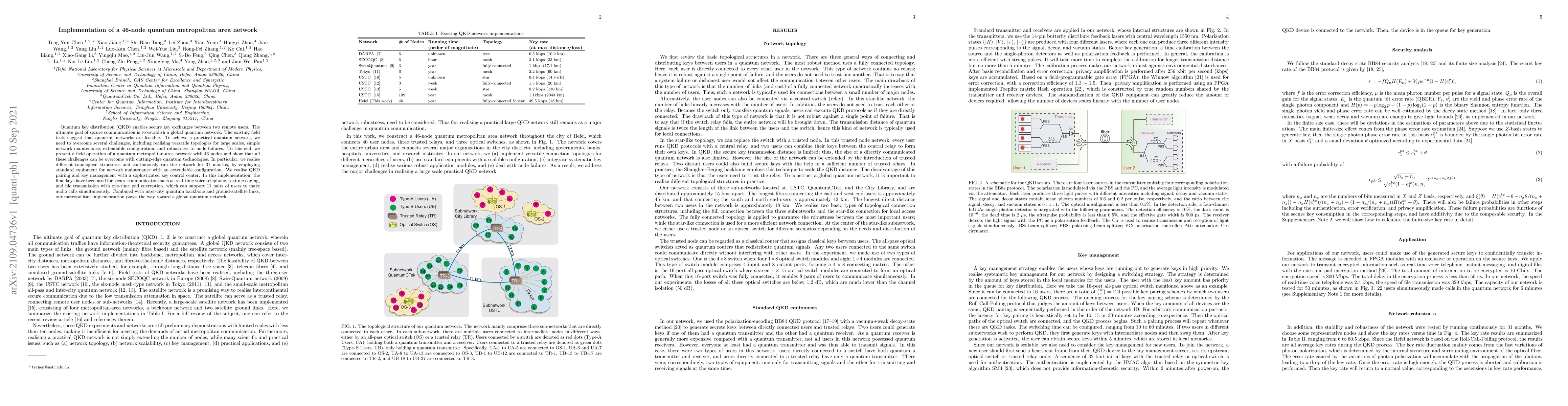 This paper details the successful implementation of a 46-node quantum metropolitan area network, demonstrating the feasibility of large-scale quantum key distribution (QKD) and overcoming challenges like network maintenance, topology versatility, and robustness. The network operated for 31 months, enabling secure communication for multiple users.