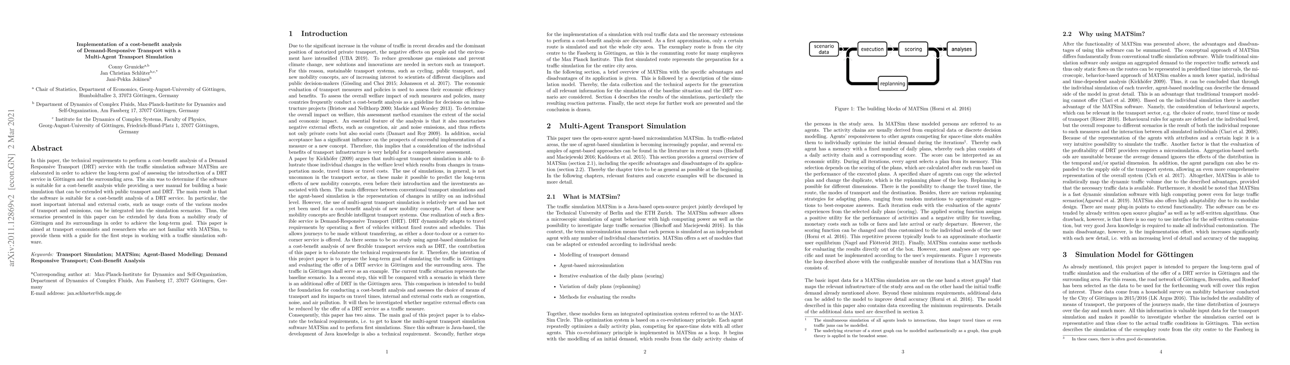 In this paper, the technical requirements to perform a cost-benefit analysis of a Demand Responsive Transport (DRT) service with the traffic simulation software MATSim are elaborated in order to achieve the long-term goal of assessing the introduction of a DRT service in G\"ottingen and the surrounding area. The aim was to determine if the software is suitable for a cost-benefit analysis while providing a user manual for building a basic simulation that can be extended with public transport and DRT. The main result is that the software is suitable for a cost-benefit analysis of a DRT service. In particular, the most important internal and external costs, such as usage costs of the various modes of transport and emissions, can be integrated into the simulation scenarios. Thus, the scenarios presented in this paper can be extended by data from a mobility study of G\"ottingen and its surroundings in order to achieve the long-term goal. This paper is aimed at transport economists and researchers who are not familiar with MATSim, to provide them with a guide for the first steps in working with a traffic simulation software.