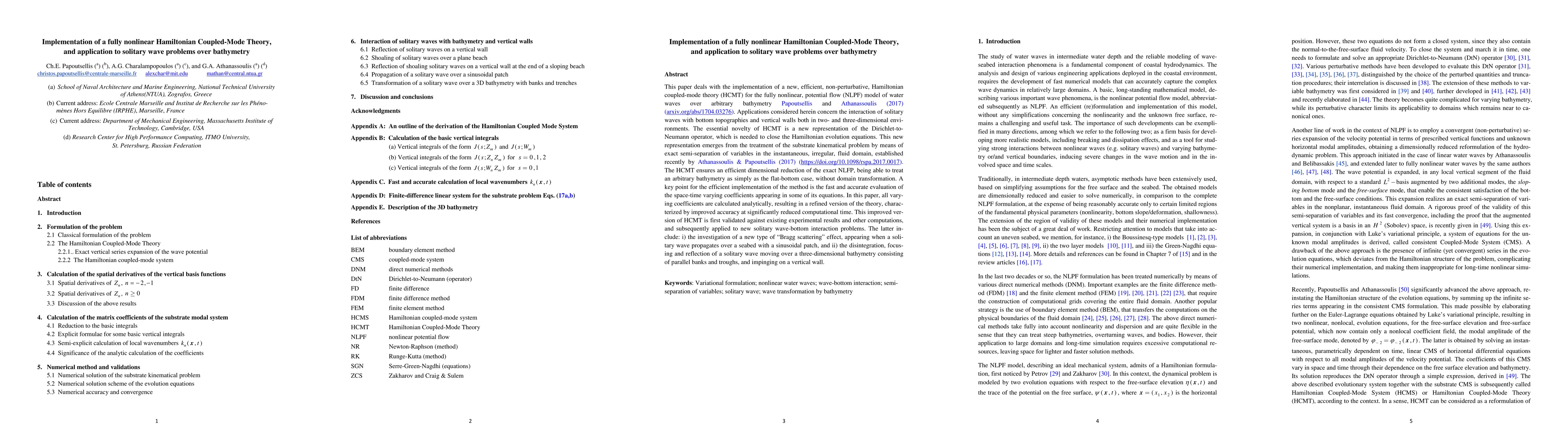 This paper introduces a new, efficient Hamiltonian coupled-mode theory (HCMT) for fully nonlinear water waves over arbitrary bathymetry. The HCMT is validated and applied to study solitary wave interactions with complex seabed topographies and vertical walls, revealing new scattering effects and wave dynamics.