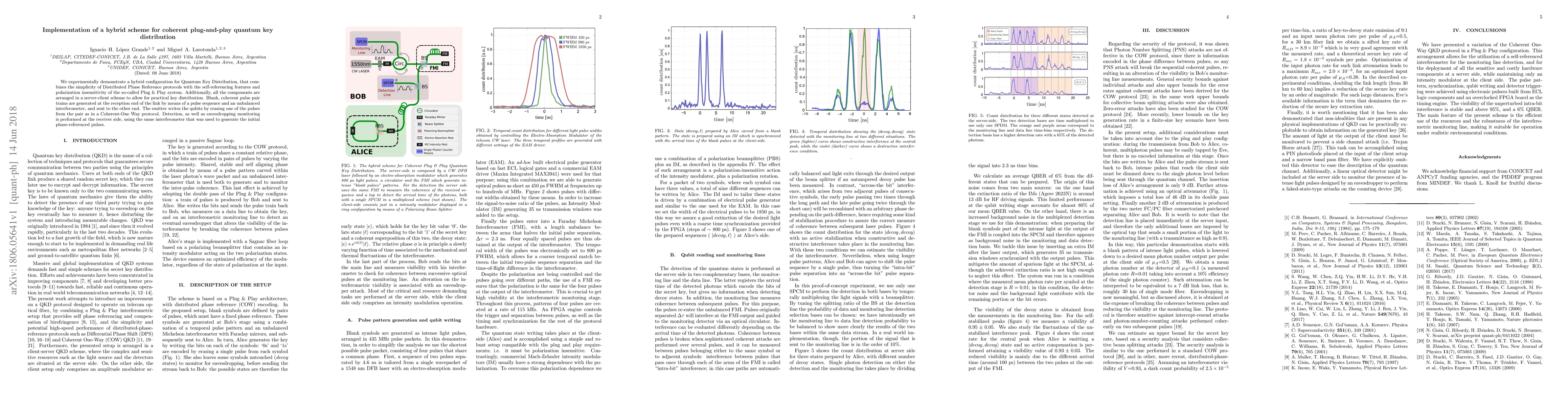 This paper demonstrates a hybrid quantum key distribution scheme that combines simplicity with self-referencing features for secure key exchange between two parties.