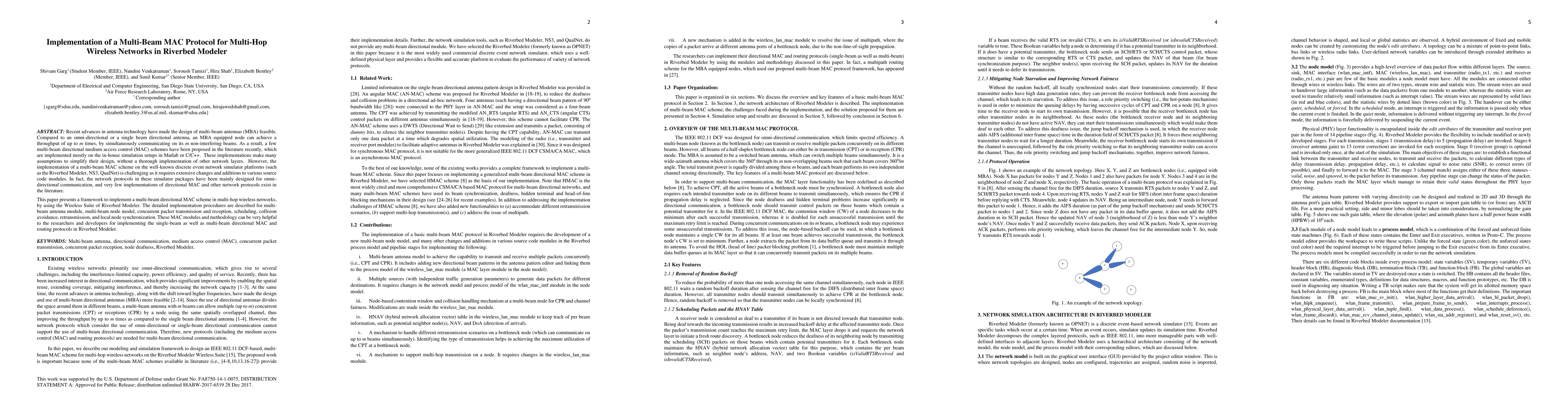 The novelty of this work lies in its comprehensive approach to implementing a multi-beam MAC protocol within the constraints of Riverbed Modeler, providing a practical framework for researchers and developers in the field.