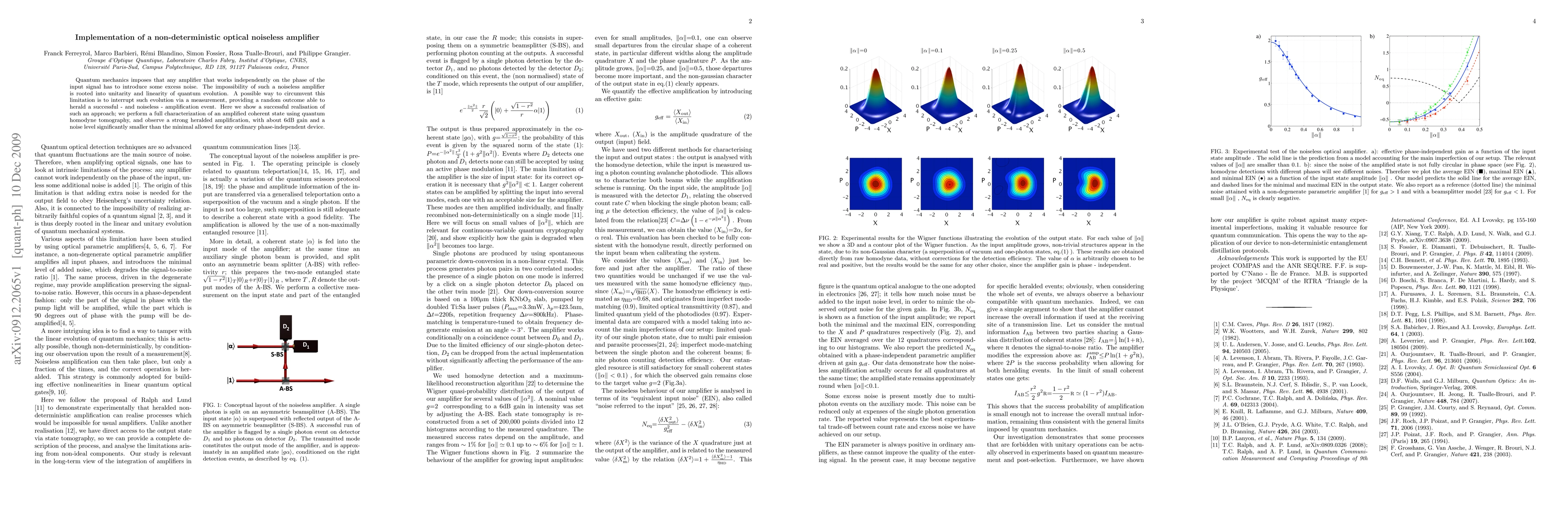 This paper demonstrates the successful implementation of a non-deterministic optical noiseless amplifier that circumvents quantum noise limitations through measurement-induced interruption, achieving a 6dB gain with significantly reduced noise. Quantum homodyne tomography characterizes the amplified coherent state.