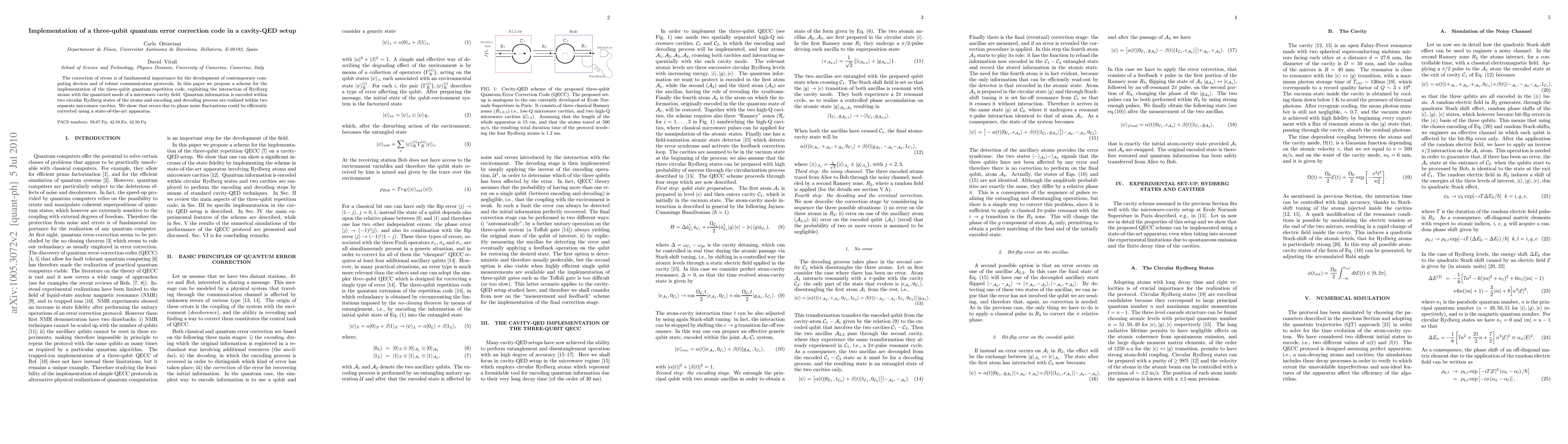 The correction of errors is of fundamental importance for the development of contemporary computing devices and of robust communication protocols. In this paper we propose a scheme for the implementation of the three-qubit quantum repetition code, exploiting the interaction of Rydberg atoms with the quantized mode of a microwave cavity field. Quantum information is encoded within two circular Rydberg states of the atoms and encoding and decoding process are realized within two separate microwave cavities. We show that errors due to phase noise fluctuations could be efficiently corrected using a state-of-the-art apparatus.