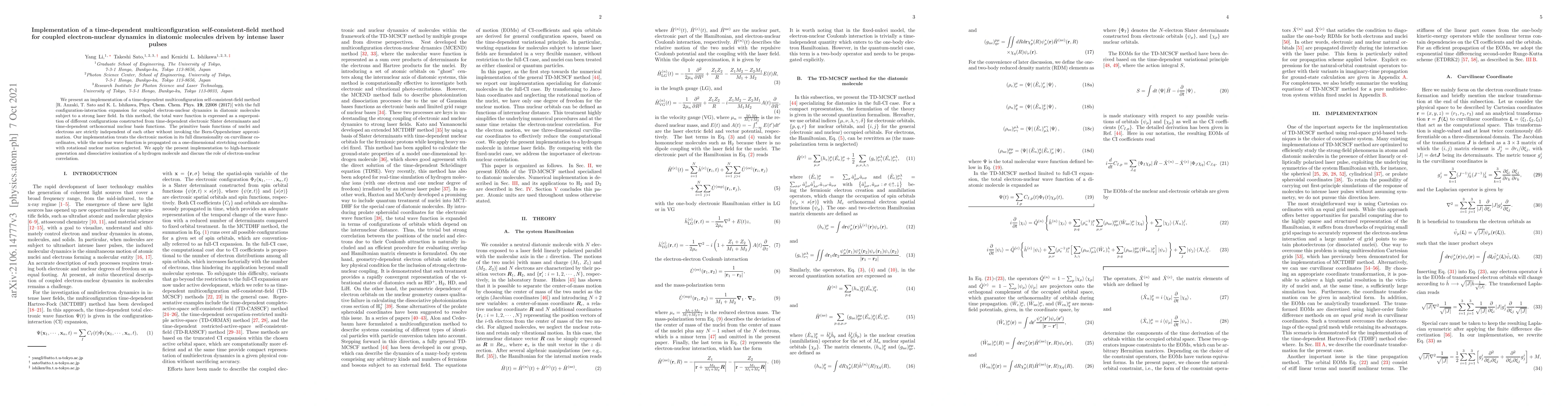 The paper introduces an efficient numerical implementation of the TD-MCSCF method for coupled electron-nuclear dynamics, enabling accurate simulations of laser-driven molecular processes.