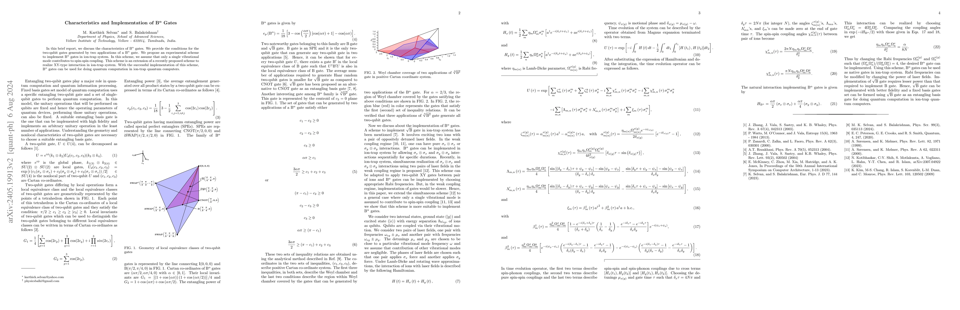 In this brief report, we discuss the characteristics of B$^{\alpha}$ gates. We propose an experimental scheme to implement B$^{\alpha}$ gates in ion-trap system. In this scheme, we assume that only a single vibrational mode contributes to spin-spin coupling. This scheme is an extension of a recently proposed scheme to realize XY-type interaction in ion-trap system. With the successful implementation of this scheme, B$^{\alpha}$ gates can be used for doing quantum computation in ion-trap quantum computers.