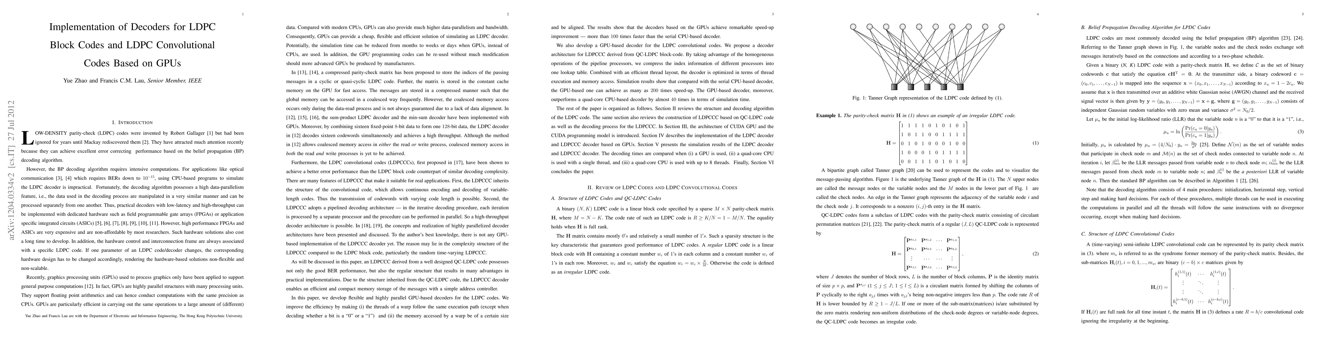 The research proposes efficient LDPC block-code and LDPC convolutional code (LDPCCC) decoders based on GPUs, utilizing the belief propagation (BP) decoding algorithm and exploiting the parallel processing capabilities of GPUs.