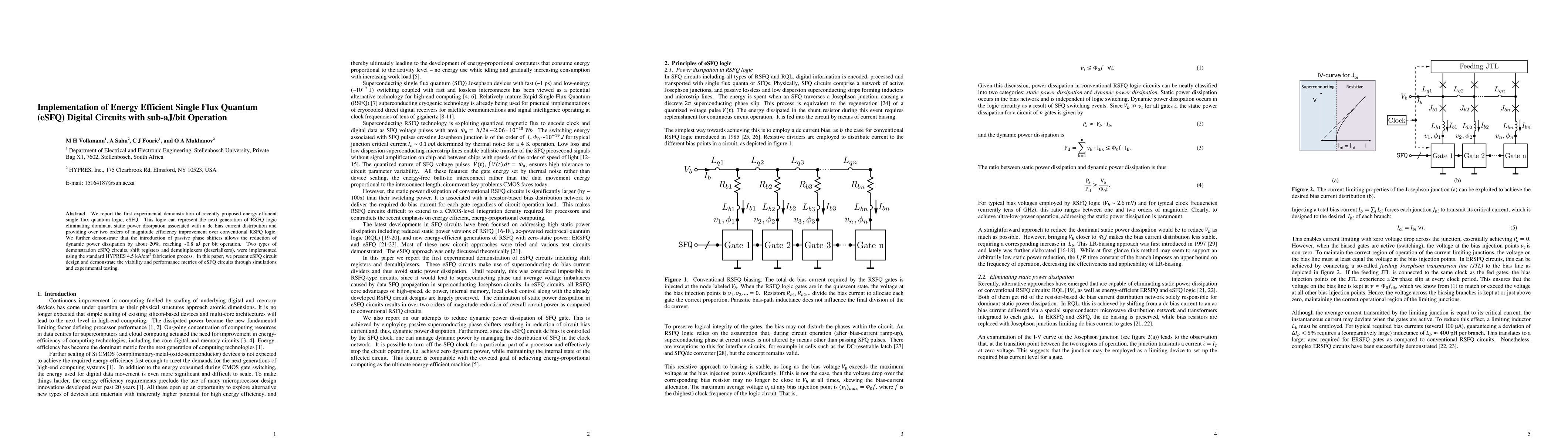 This paper demonstrates the first experimental implementation of energy-efficient eSFQ digital circuits, achieving sub-aJ/bit operation and over two orders of magnitude efficiency improvement over conventional RSFQ logic. The use of passive phase shifters reduces dynamic power dissipation by 20%, reaching ~0.8 aJ per bit.