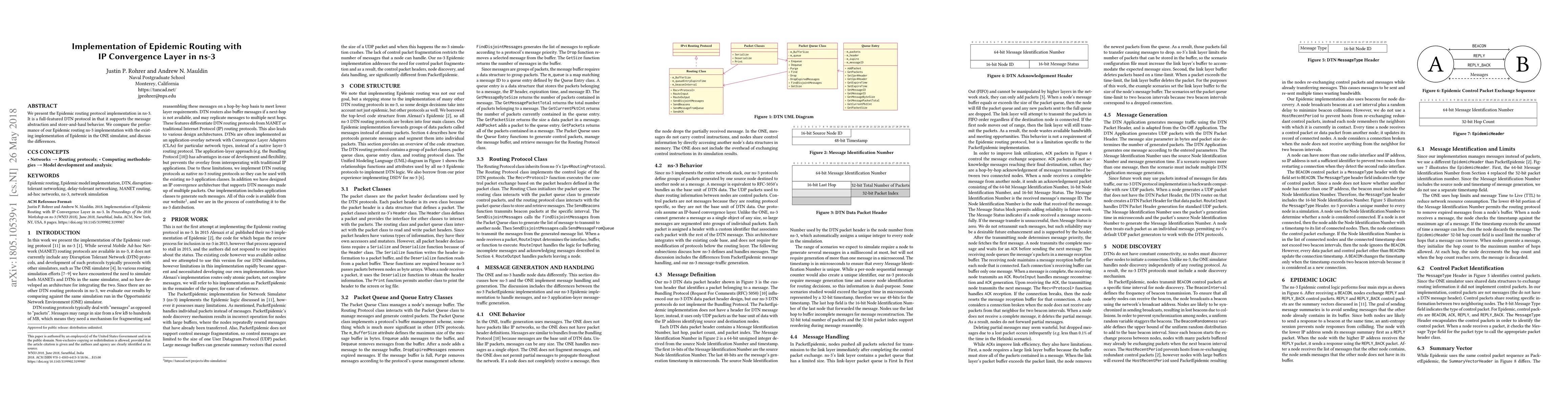 Researchers implemented Epidemic routing protocol in ns-3 and compared its performance with existing ONE simulator implementation, highlighting the differences between the two implementations.