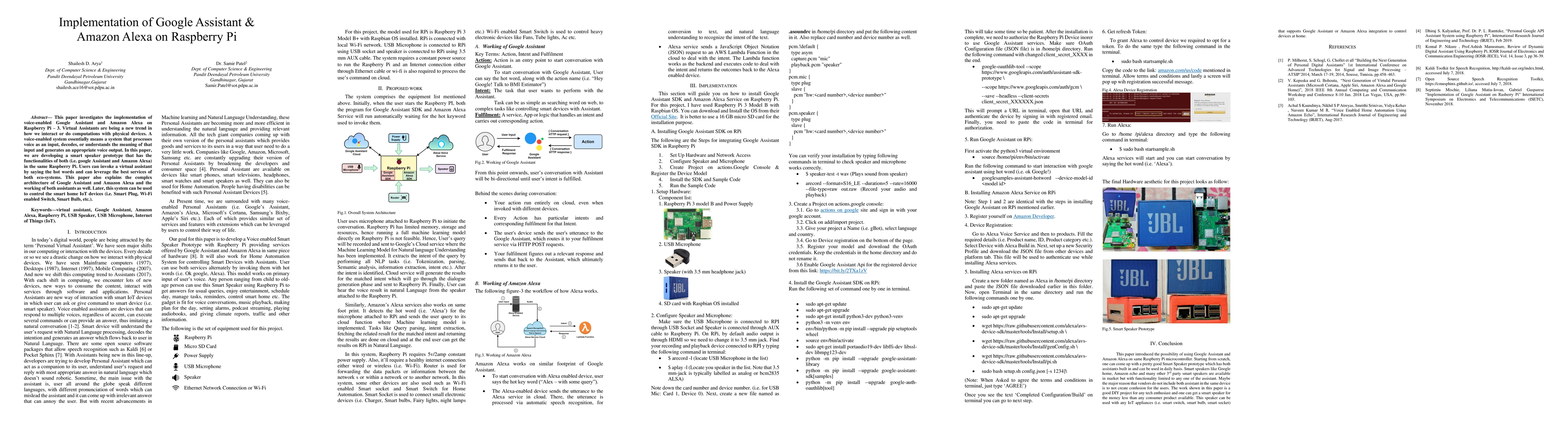 This paper explores integrating Google Assistant and Amazon Alexa functionalities into a Raspberry Pi-based smart speaker prototype, enabling users to leverage both virtual assistants' services and control smart home IoT devices. The study details the complex architecture and operational mechanisms of both Google Assistant and Amazon Alexa.