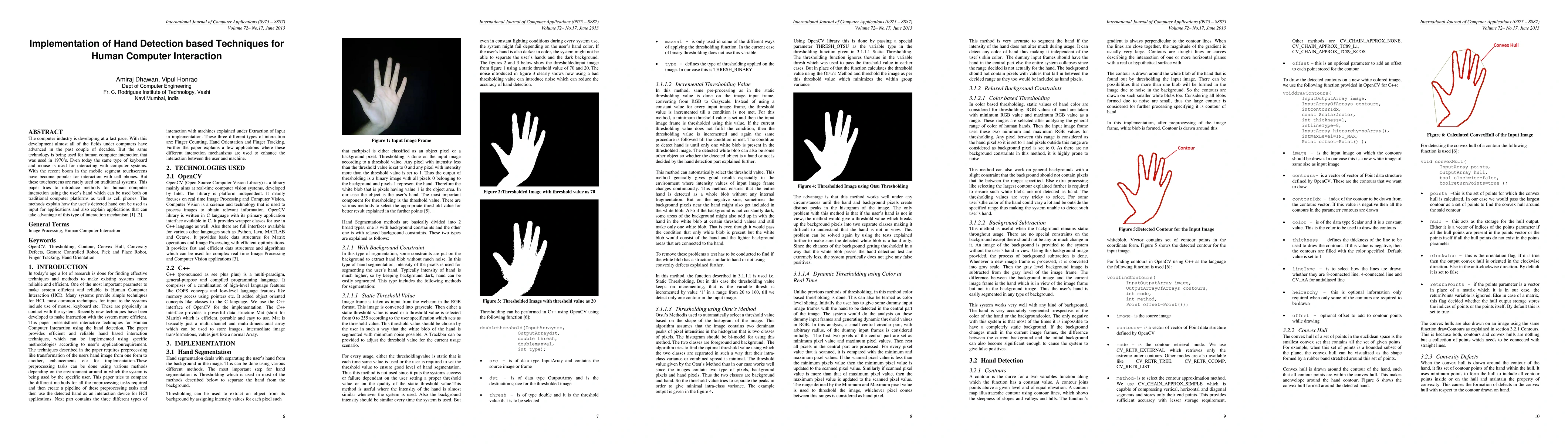 The computer industry is developing at a fast pace. With this development almost all of the fields under computers have advanced in the past couple of decades. But the same technology is being used for human computer interaction that was used in 1970s. Even today the same type of keyboard and mouse is used for interacting with computer systems. With the recent boom in the mobile segment touchscreens have become popular for interaction with cell phones. But these touchscreens are rarely used on traditional systems. This paper tries to introduce methods for human computer interaction using the users hand which can be used both on traditional computer platforms as well as cell phones. The methods explain how the users detected hand can be used as input for applications and also explain applications that can take advantage of this type of interaction mechanism.
