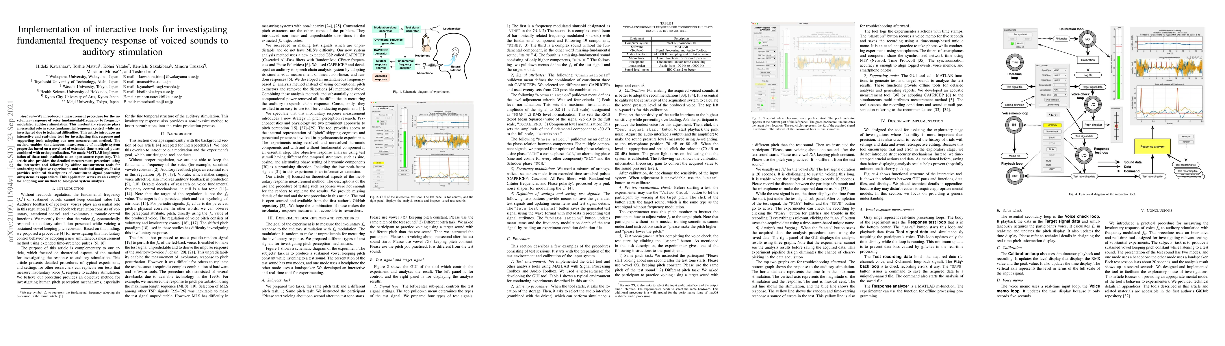 We introduced a measurement procedure for the involuntary response of voice fundamental-frequency to frequency modulated auditory stimulation. This involuntary response plays an essential role in voice fundamental frequency control while less investigated due to technical difficulties. This article introduces an interactive and real-time tool for investigating this response and supporting tools adopting our new measurement method. The method enables simultaneous measurement of multiple system properties based on a novel set of extended time-stretched pulses combined with orthogonalization. We made MATLAB implementation of these tools available as an open-source repository. This article also provides the detailed measurement procedure using the interactive tool followed by offline measurement tools for conducting subjective experiments and statistical analyses. It also provides technical descriptions of constituent signal processing subsystems as appendices. This application serves as an example for adopting our method to biological system analysis.