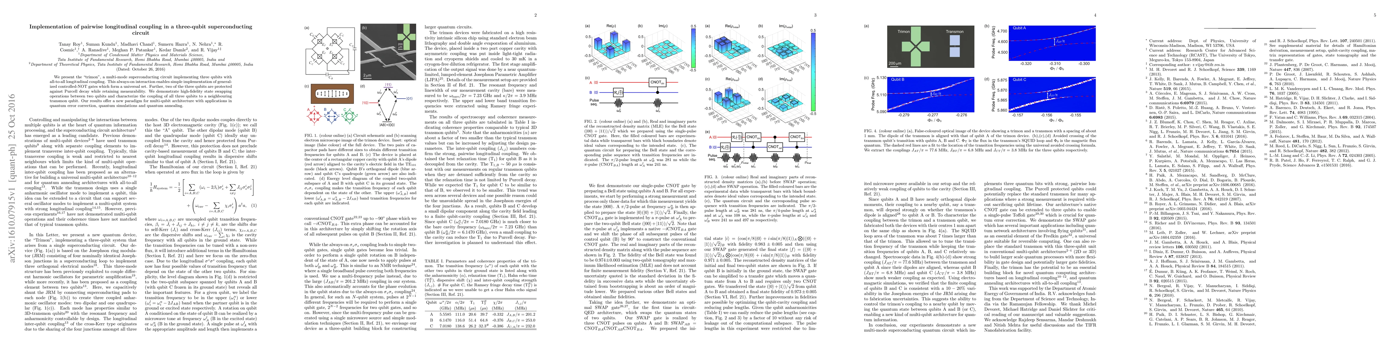 This paper introduces a "trimon" superconducting circuit with three qubits featuring all-to-all longitudinal coupling, enabling universal quantum gate operations and protecting two qubits from decay. The study demonstrates high-fidelity state swapping and coupling characterization, proposing a novel architecture for quantum computing applications.