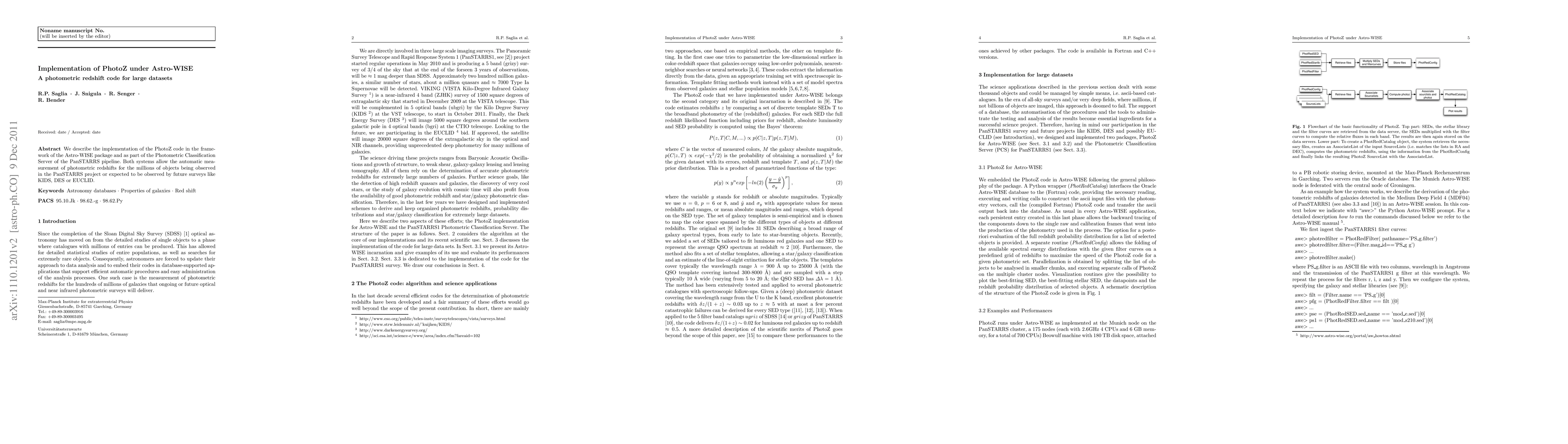 The PhotoZ code has been integrated into the Astro-WISE package and the Photometric Classification Server of the PanSTARRS pipeline to automate the measurement of photometric redshifts for millions of objects in the PanSTARRS project and future surveys like KIDS, DES, and EUCLID. This implementation facilitates large-scale astronomical data analysis.