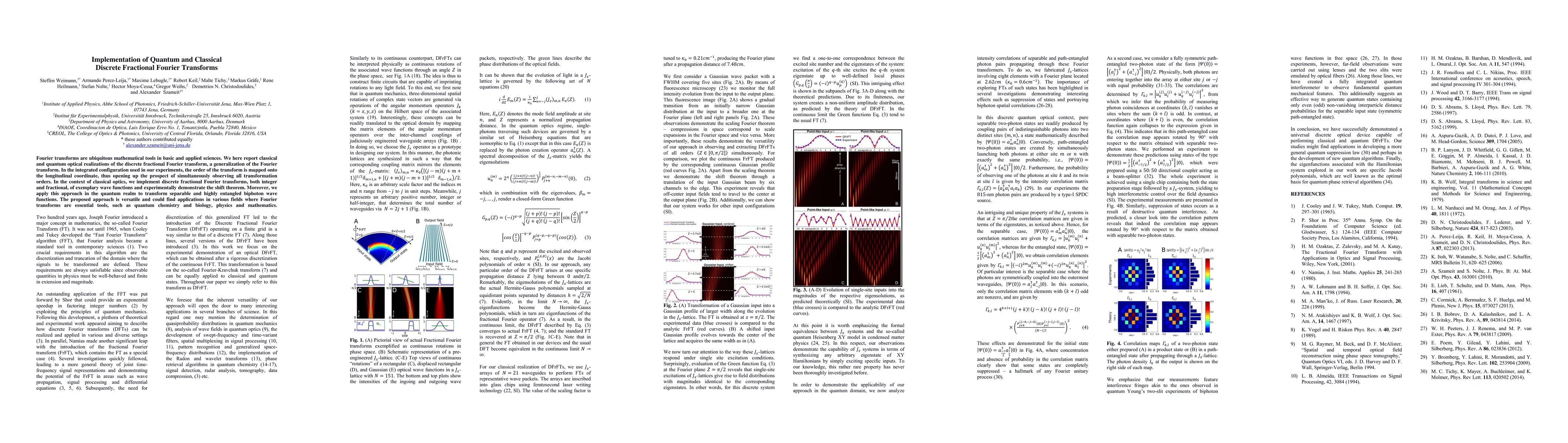This paper reports the implementation of both classical and quantum optical versions of the discrete fractional Fourier transform, demonstrating its versatility in transforming wave functions and showing potential applications in quantum chemistry, biology, and physics. The integrated configuration allows simultaneous observation of all transformation orders, highlighting its broad applicability.