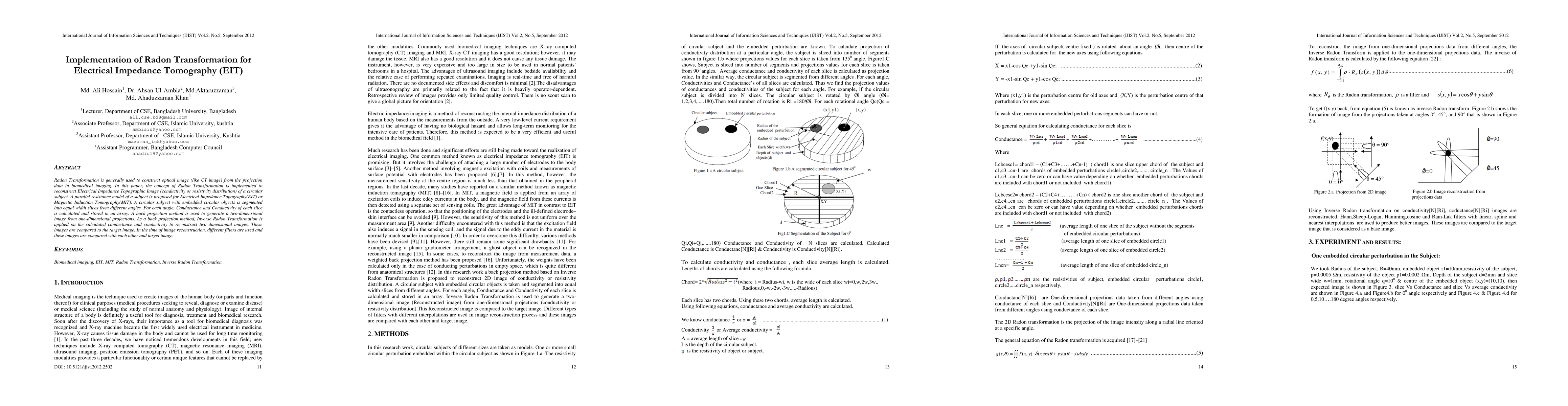 This paper implements Radon Transformation to reconstruct Electrical Impedance Topographic Images (EIT) of a circular subject, using a parallel resistance model and back projection methods. The results are compared against target images, evaluating the effectiveness of different filters during reconstruction.