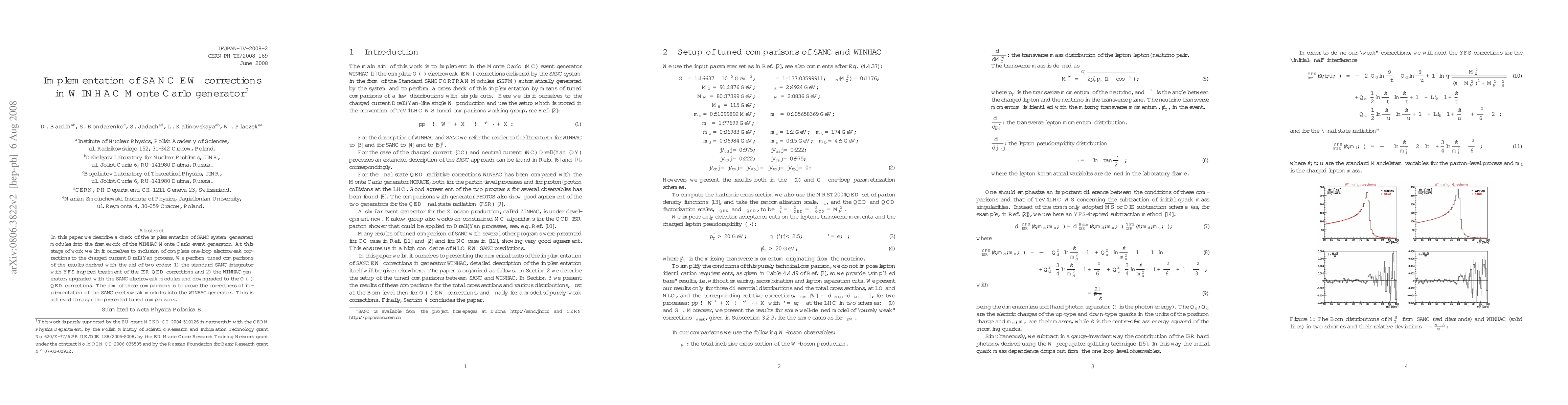 In this paper we describe a check of the implementation of SANC system generated modules into the framework of the WINHAC Monte Carlo event generator. At this stage of work we limit ourselves to inclusion of complete one-loop electroweak corrections to the charged-current Drell--Yan process. We perform tuned comparisons of the results derived with the aid of two codes: 1) the standard SANC integrator with YFS-inspired treatment of the ISR QED corrections and 2) the WINHAC generator, upgraded with the SANC electroweak modules and downgraded to the O(\alpha) QED corrections. The aim of these comparisons is to prove the correctness of implementation of the SANC electroweak modules into the WINHAC generator. This is achieved through the presented tuned comparisons.