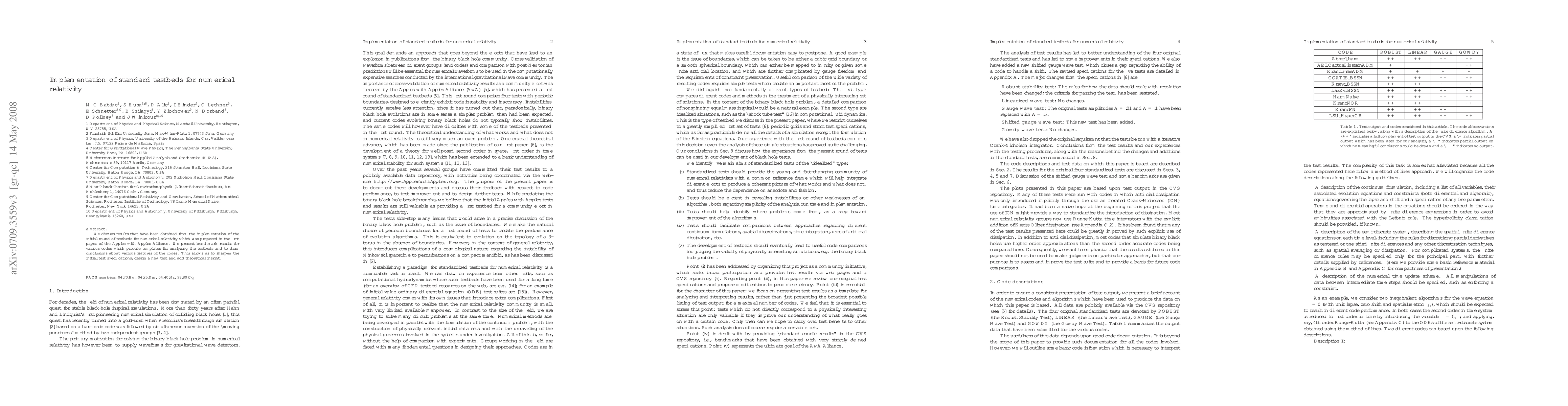 We discuss results that have been obtained from the implementation of the initial round of testbeds for numerical relativity which was proposed in the first paper of the Apples with Apples Alliance. We present benchmark results for various codes which provide templates for analyzing the testbeds and to draw conclusions about various features of the codes. This allows us to sharpen the initial test specifications, design a new test and add theoretical insight.