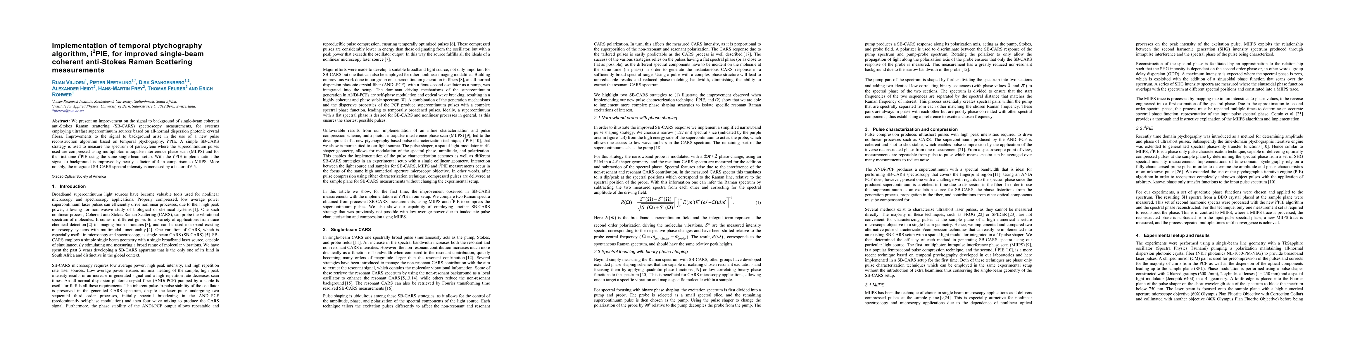 Researchers improved single-beam coherent anti-Stokes Raman scattering measurements using a new pulse-reconstruction algorithm called I$^2$PIE, increasing spectral intensity by a factor of 6.5 and signal-to-background by nearly a factor of 4.
