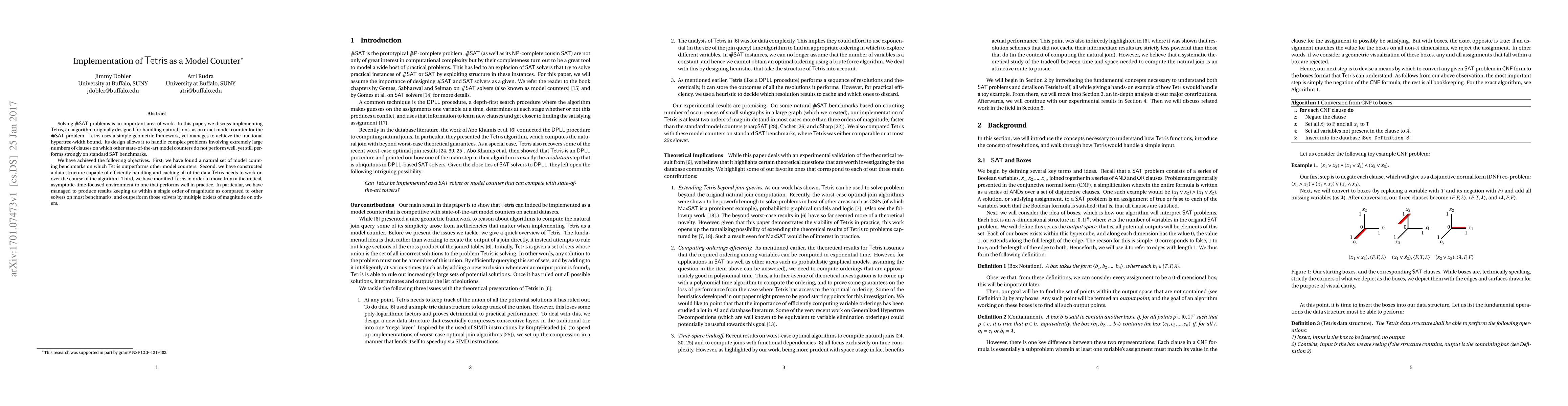 Researchers successfully implemented Tetris as a model counter for SharpSAT problems, outperforming existing solvers on many benchmarks, achieving results within an order of magnitude of other solvers.