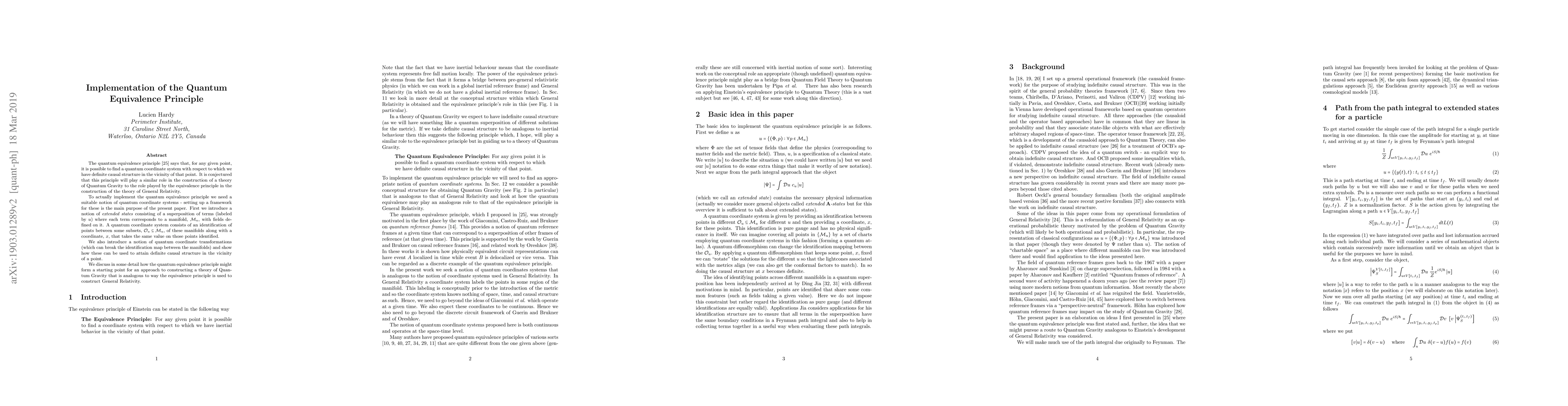 This paper proposes a framework for implementing the quantum equivalence principle, introducing extended states and quantum coordinate systems to establish definite causal structures in quantum gravity. It suggests these concepts could serve a role similar to the equivalence principle in general relativity.