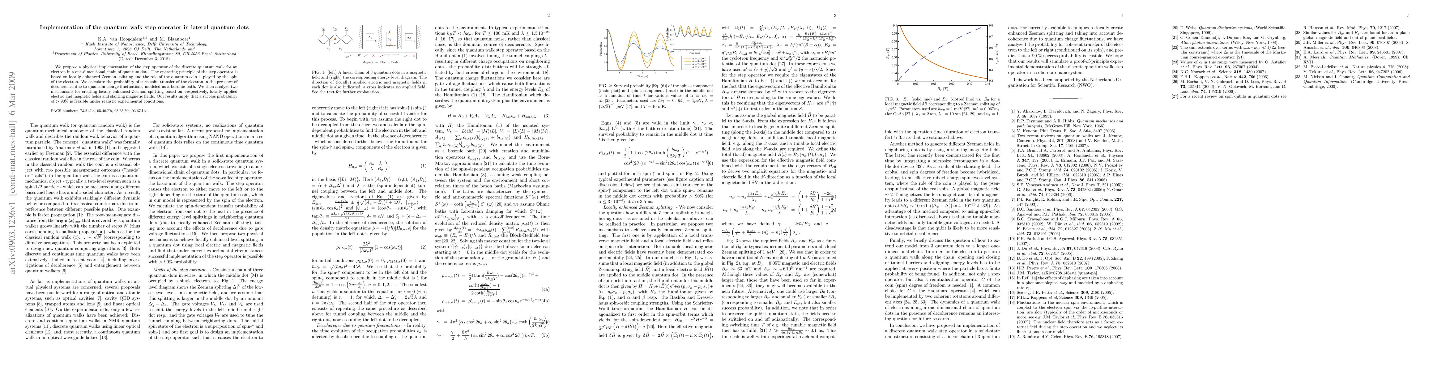 Researchers propose a method to implement quantum walk in lateral quantum dots using spin of an electron as a quantum coin, achieving a success probability of > 90% under realistic conditions.