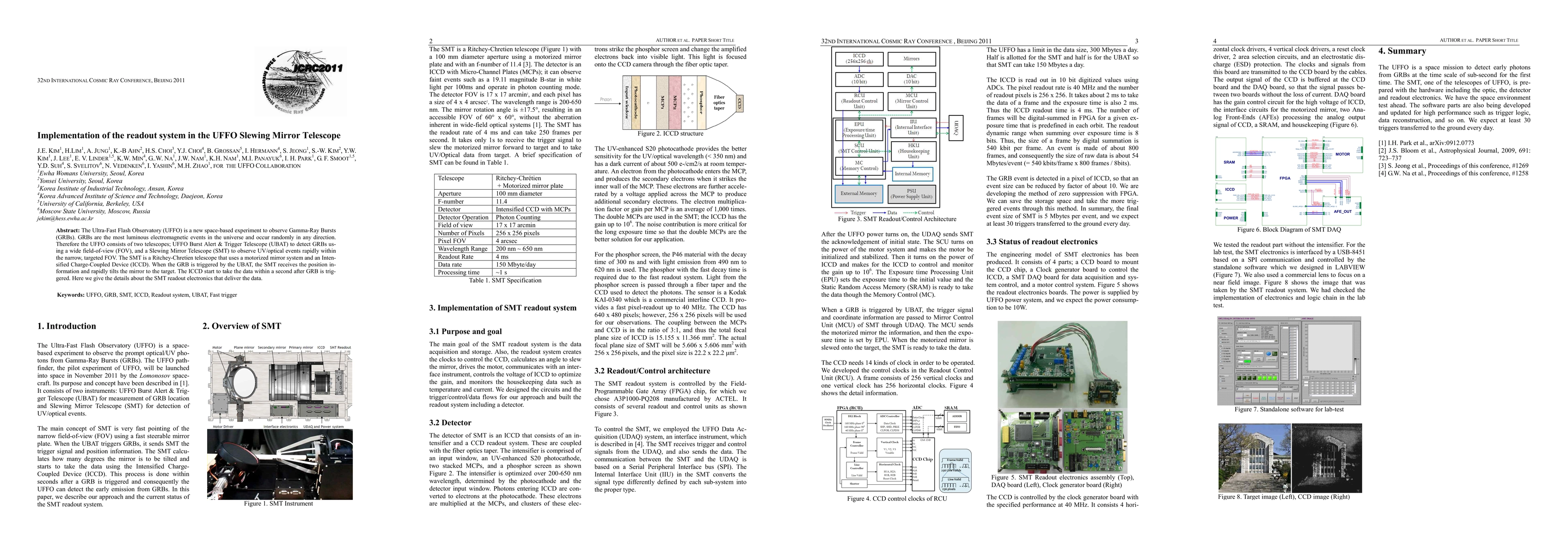 The Ultra-Fast Flash Observatory (UFFO) is a new space-based experiment to observe Gamma-Ray Bursts (GRBs). GRBs are the most luminous electromagnetic events in the universe and occur randomly in any direction. Therefore the UFFO consists of two telescopes; UFFO Burst Alert & Trigger Telescope (UBAT) to detect GRBs using a wide field-of-view (FOV), and a Slewing Mirror Telescope (SMT) to observe UV/optical events rapidly within the narrow, targeted FOV. The SMT is a Ritchey-Chretien telescope that uses a motorized mirror system and an Intensified Charge-Coupled Device (ICCD). When the GRB is triggered by the UBAT, the SMT receives the position information and rapidly tilts the mirror to the target. The ICCD start to take the data within a second after GRB is triggered. Here we give the details about the SMT readout electronics that deliver the data.